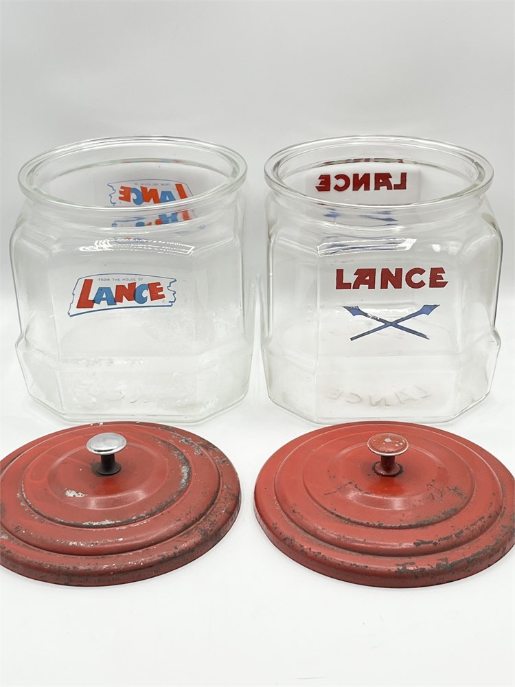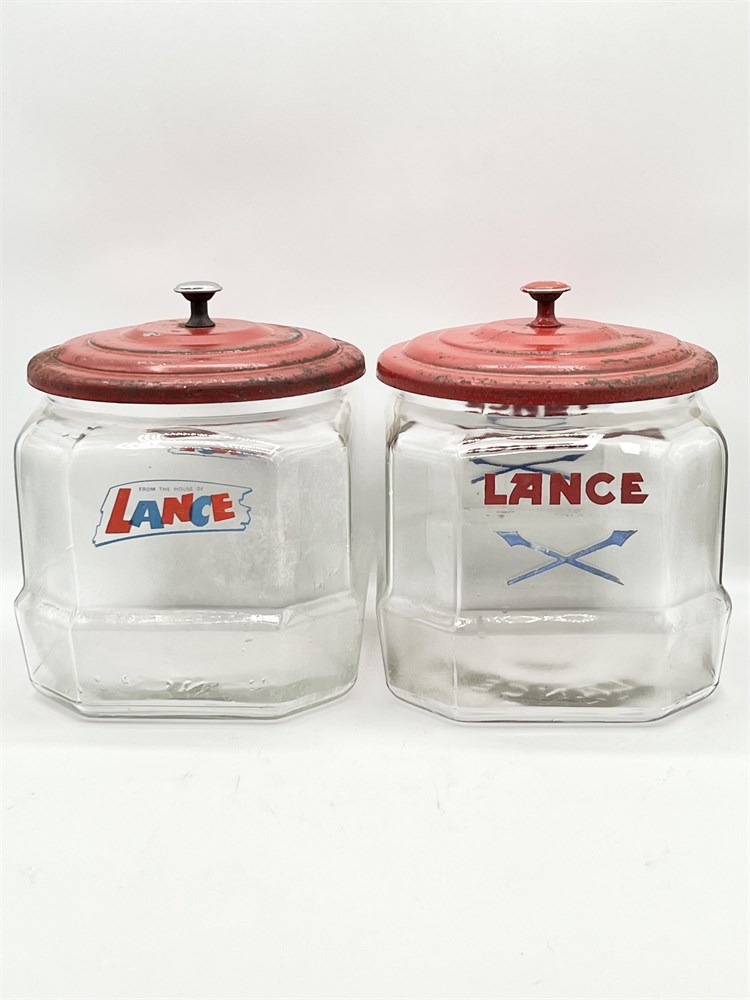 LANCE ~ Pair (2) ~ 6.5” H Store Counter Cracker Jars With Metal Lids View Watchlist >