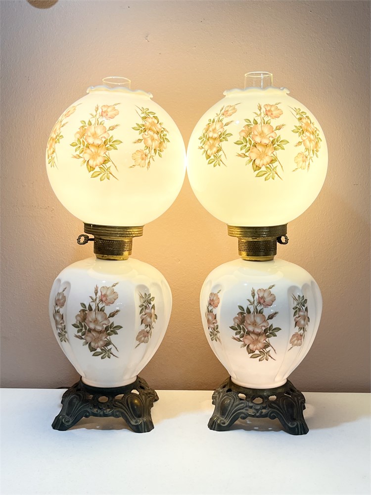Pair (2) ~ Victorian Double Globe Hurricane Table Lamps View Watchlist >