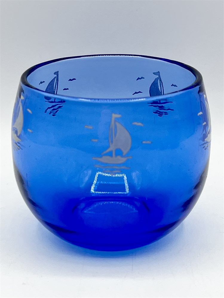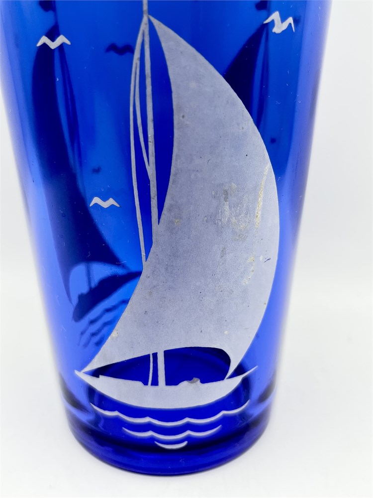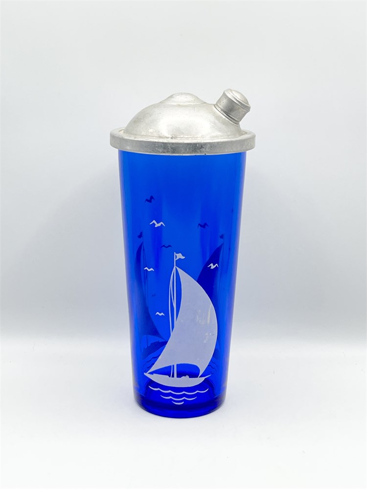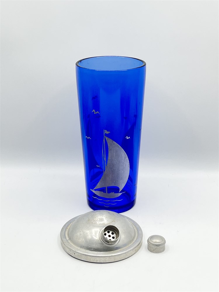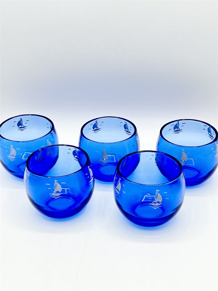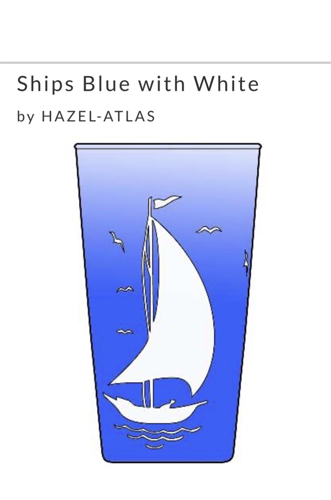 HAZEL-ATLAS ~ Ships Blue With White ~ Cocktail Shaker & (5) Roly Poly Glasses View Watchlist >