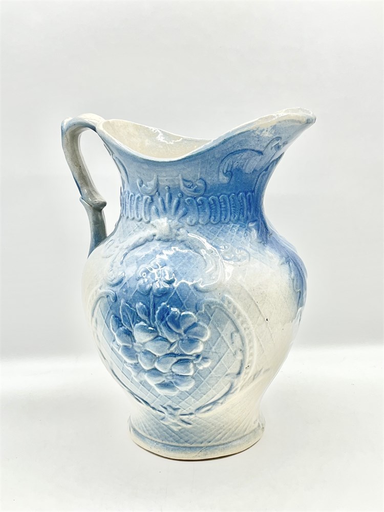 Blue & White Stoneware Pitcher & Wash Basin With Floral Pattern View Watchlist >