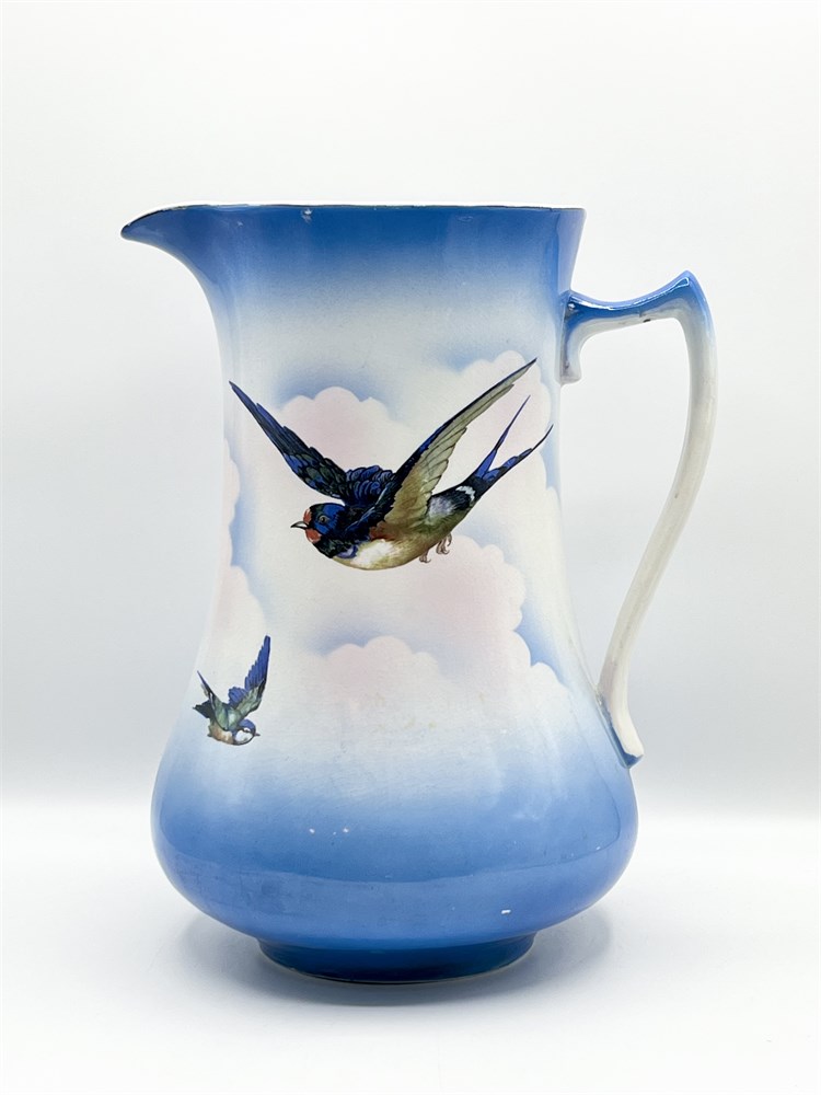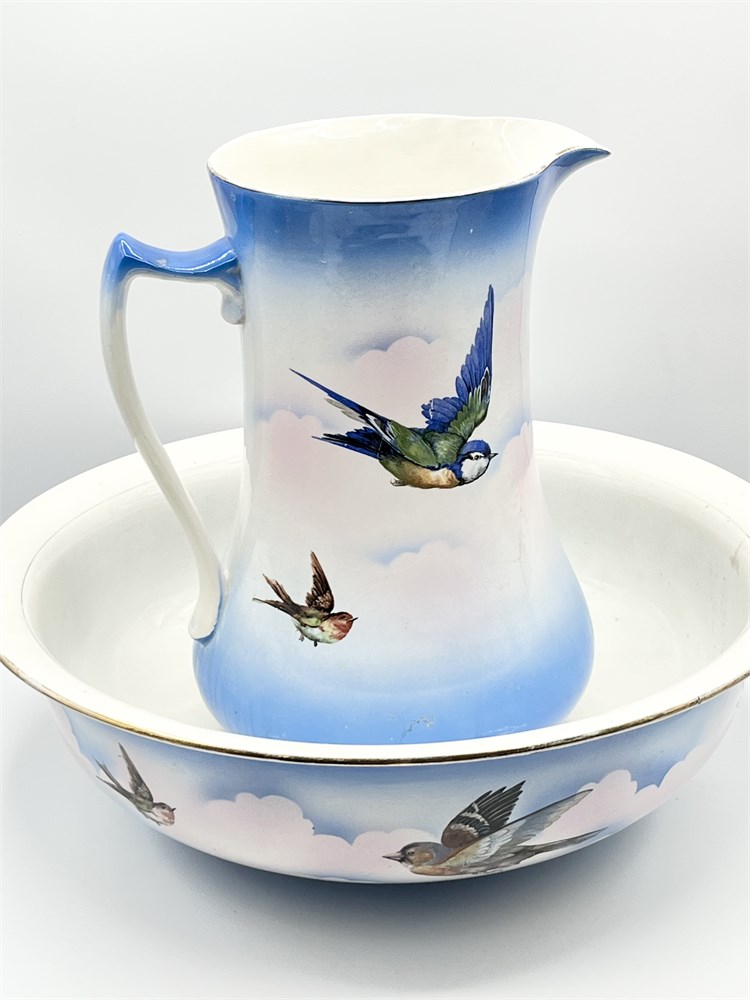Blue & White Porcelain Pitcher & Wash Basin With Bird Design View Watchlist >