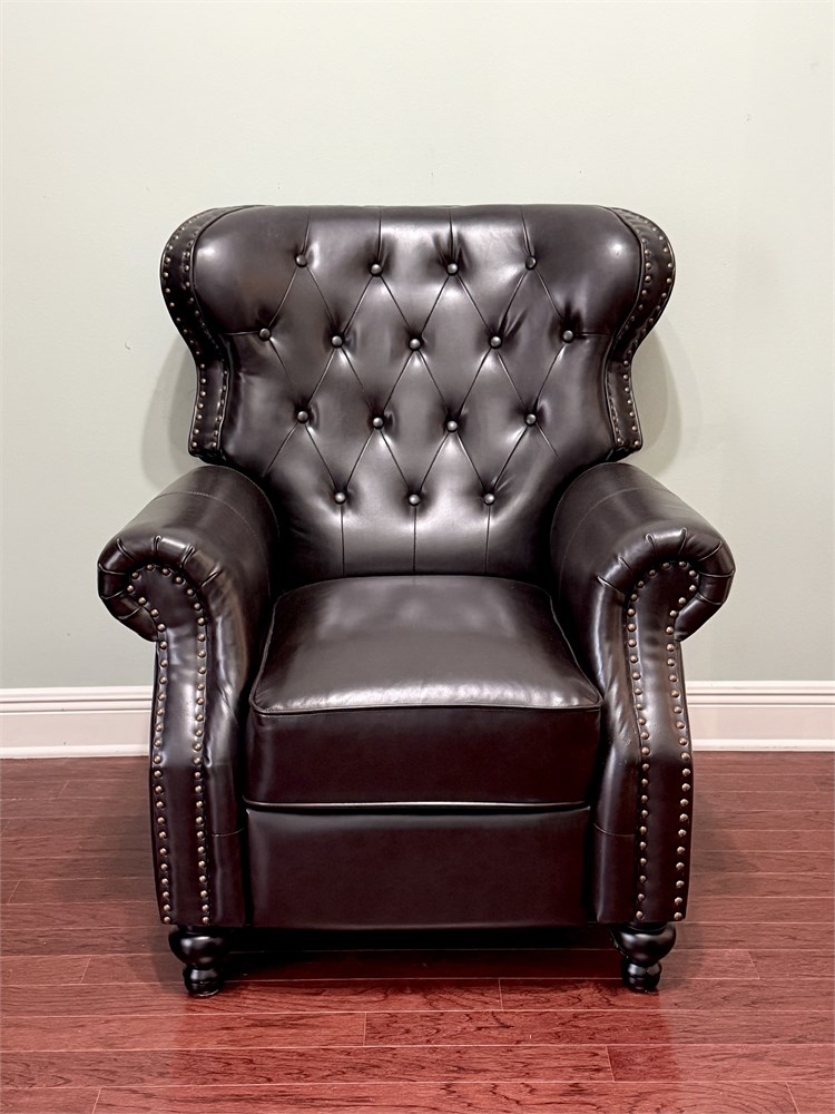 NOBLE HOUSE FURNISHINGS ~ Black Leather Manual Recliner With Nailhead Trim View Watchlist >