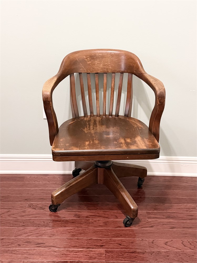 PERRY & BUCKLEY CO. ~ Solid Wood Vtg. Swivel Bankers Chair View Watchlist >