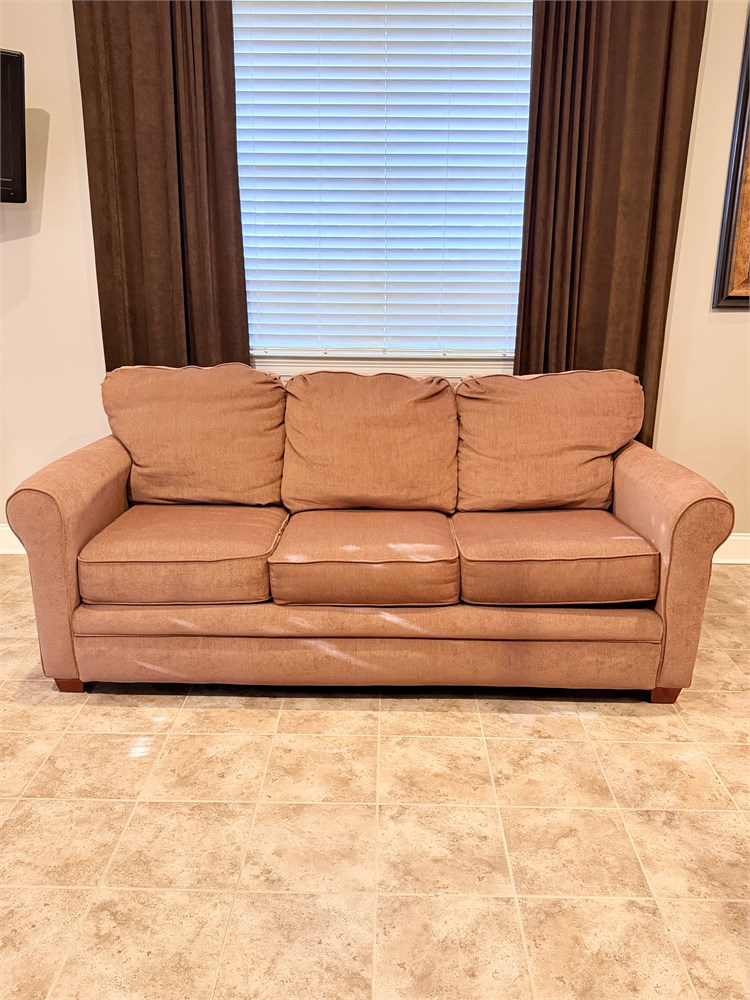 LANE FURN. ~ Salmon Chenille Upholstered Sofa Bed View Watchlist >