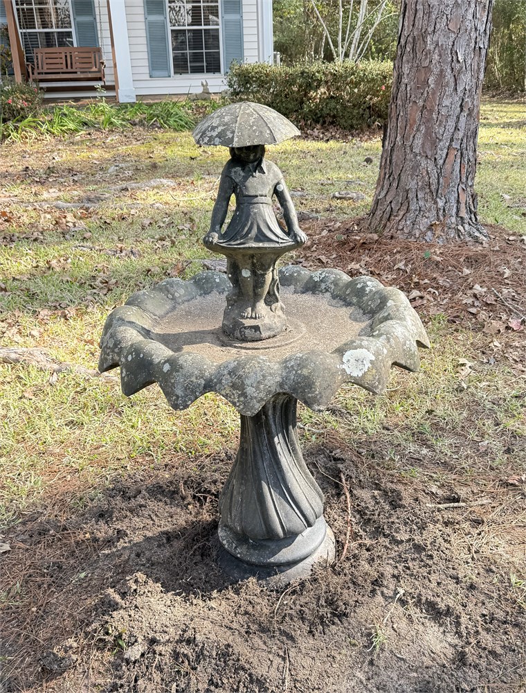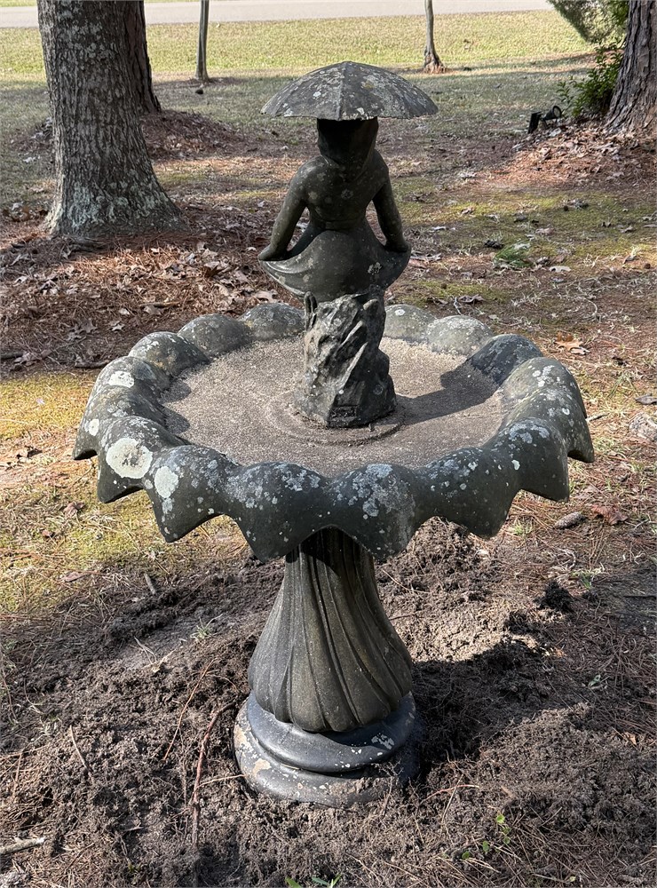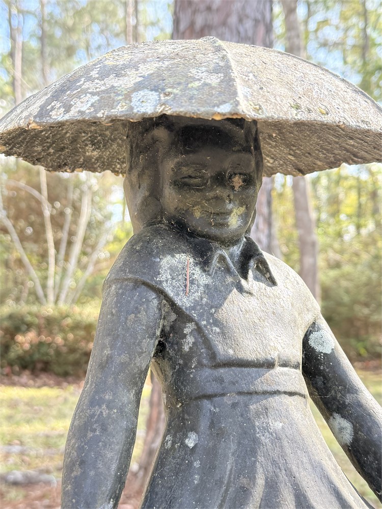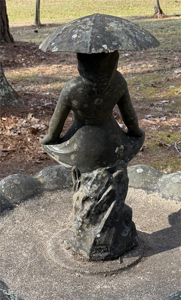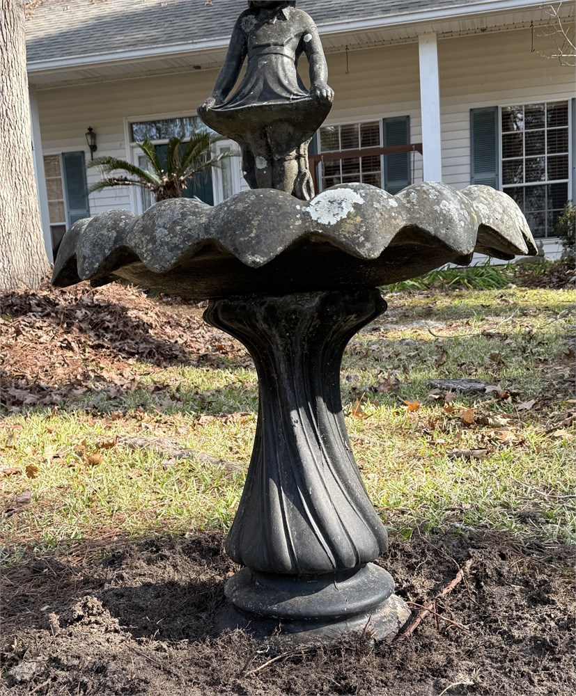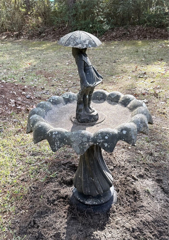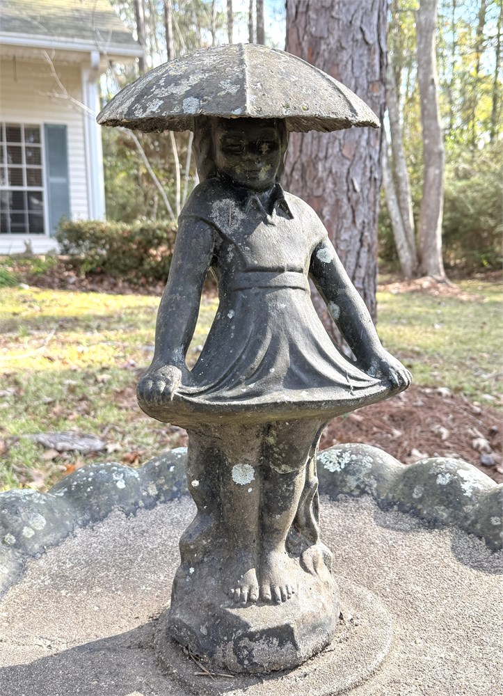 Cement Bird Bath - Girl With Umbrella **VERY Heavy View Watchlist >