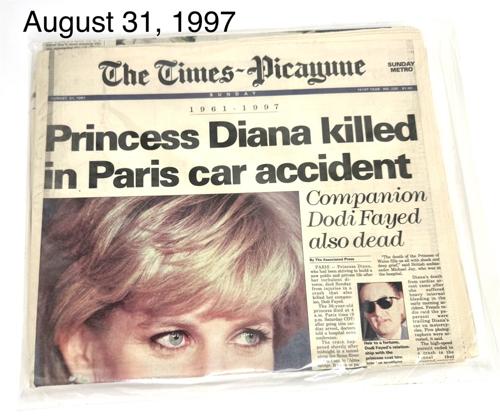 * The Times-Picayune August 31, 1997 Edition Newspaper Covering the Death of Princess Diana