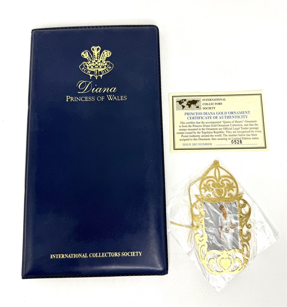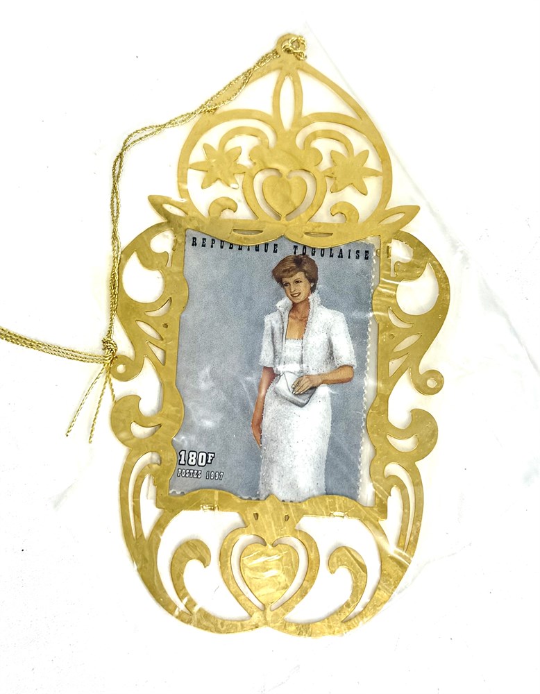 * Diana Princess of Whales Gold Toned Commemorative Stamp Ornament and Folder