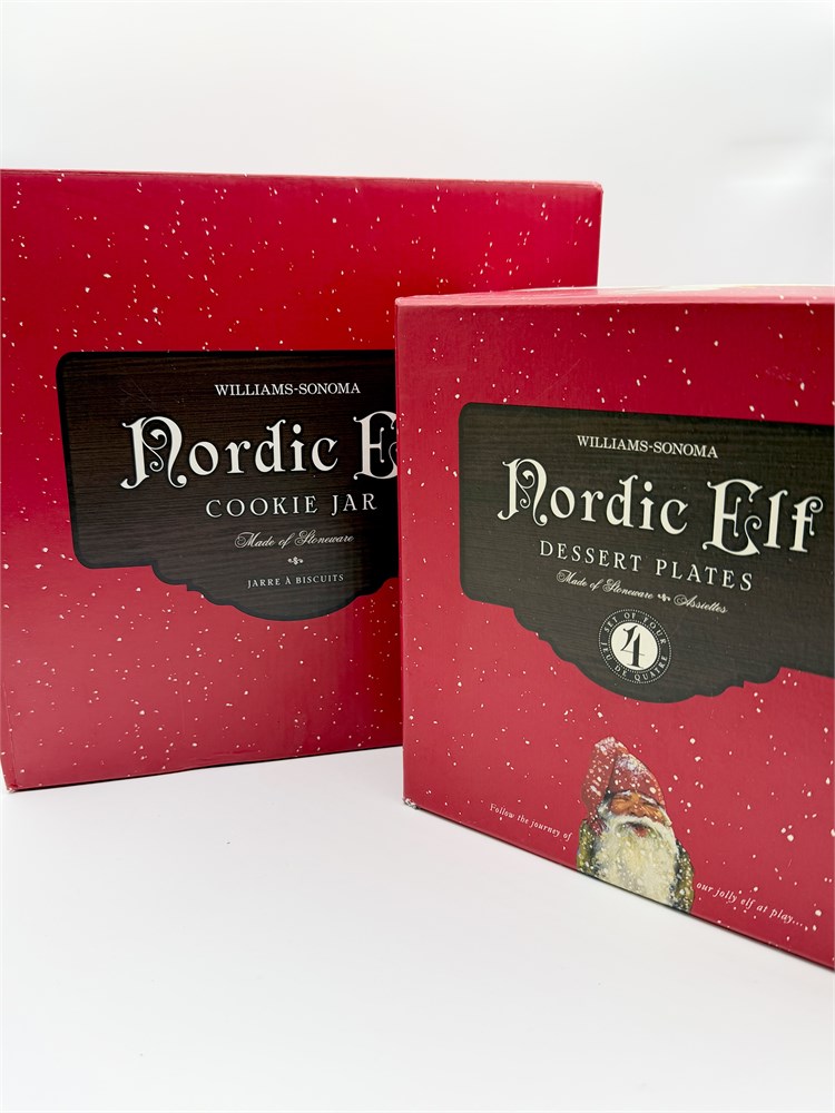 WILLIAMS-SONOMA ~ Nortic Elf ~ Cookie Jar & (4) Dessert Plates View Watchlist >