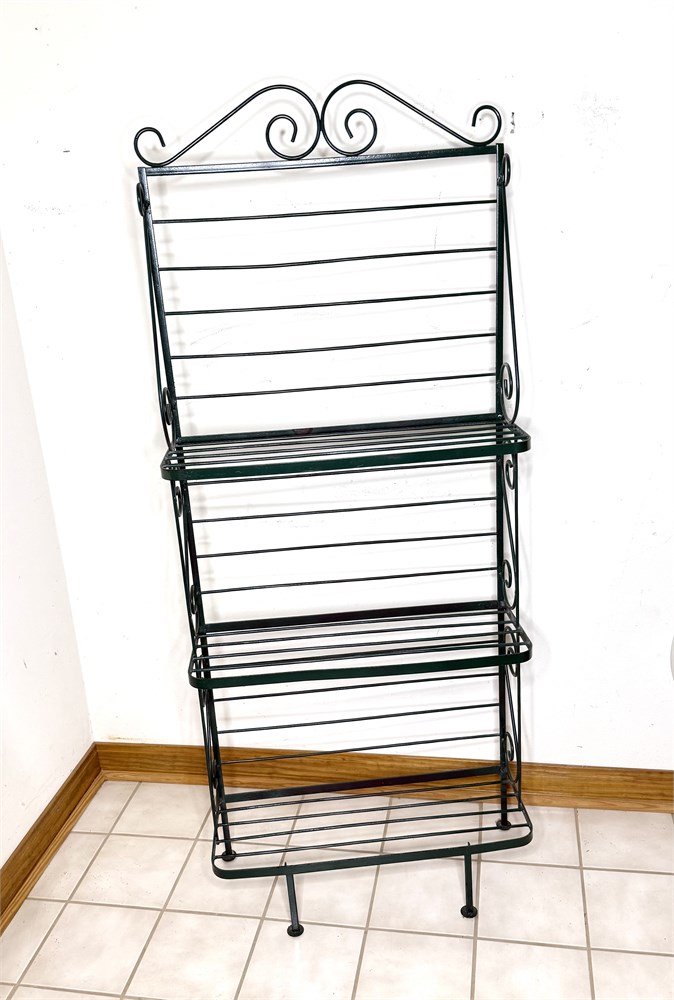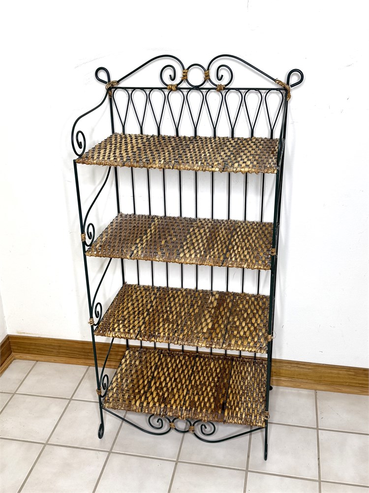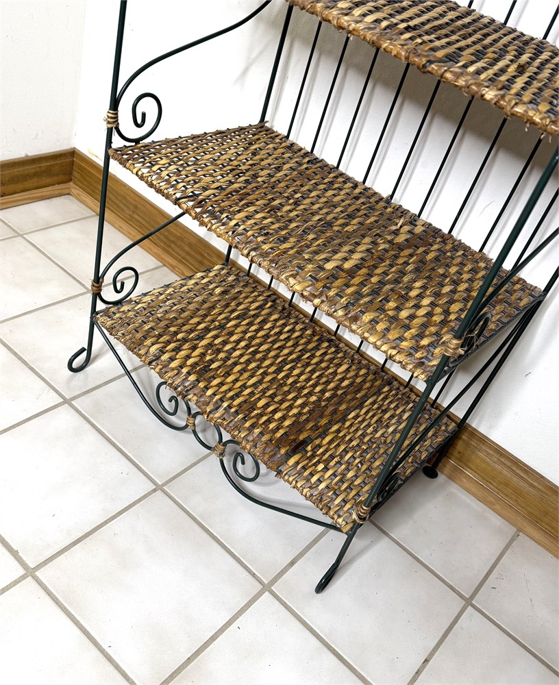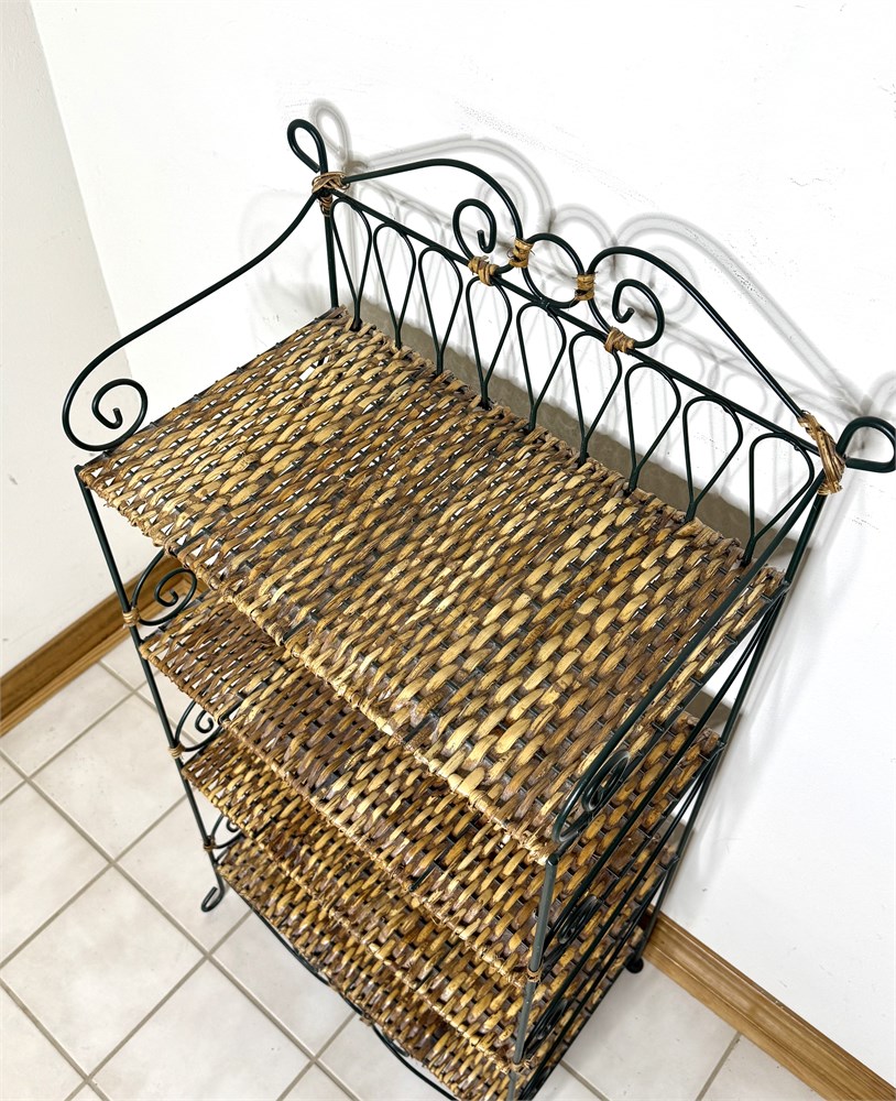 Green Wrought Iron Shelf Rack Set - Bakers Rack and Rattan Shelf View Watchlist >