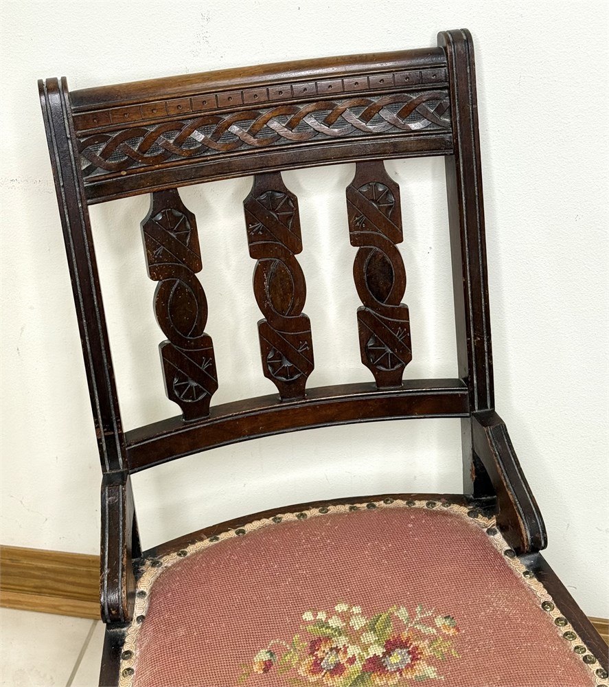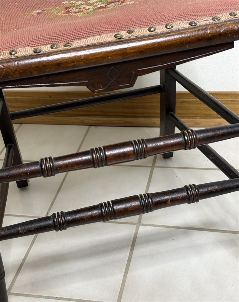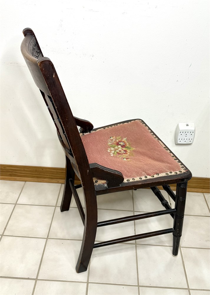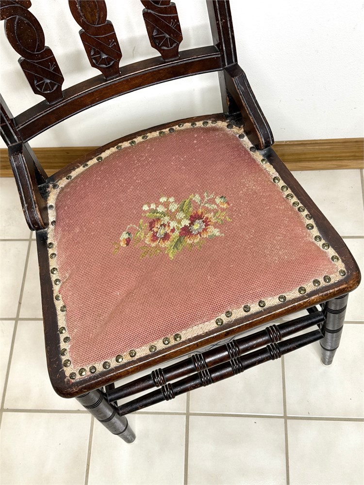 Antique Hand Carved Solid Wood Chair With Needlepoint Cushion View Watchlist >