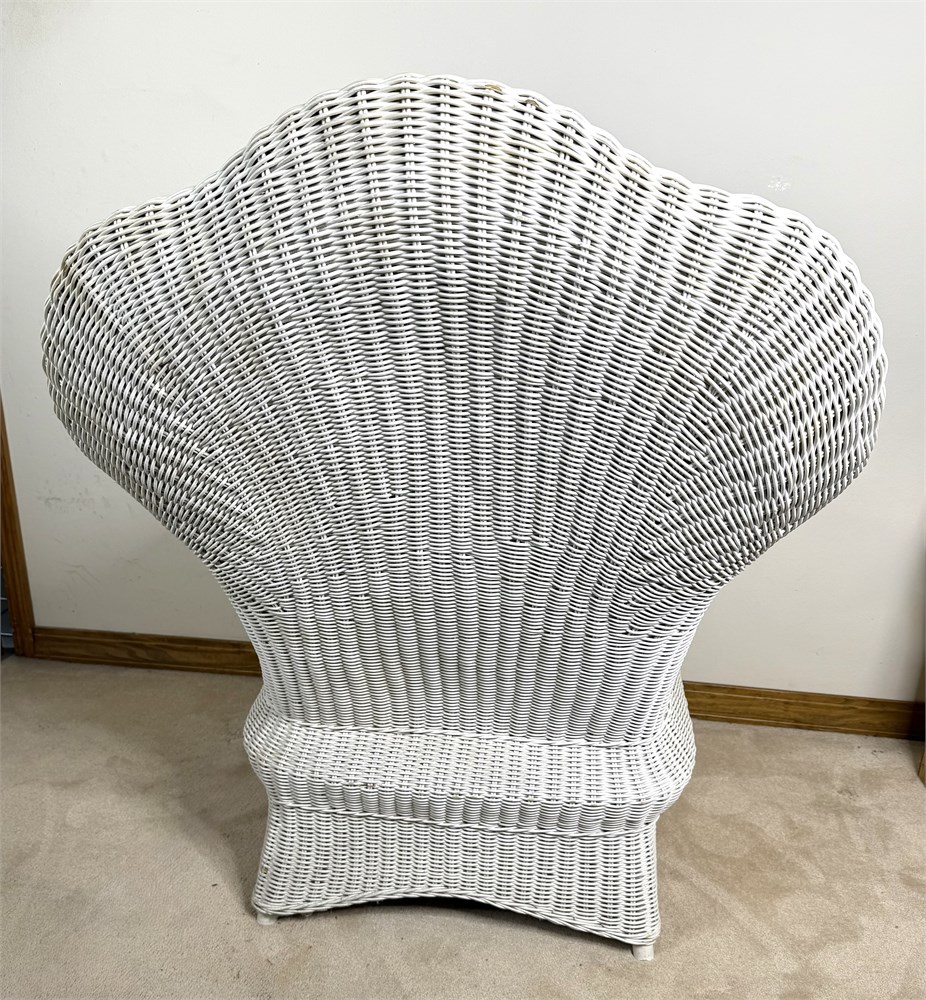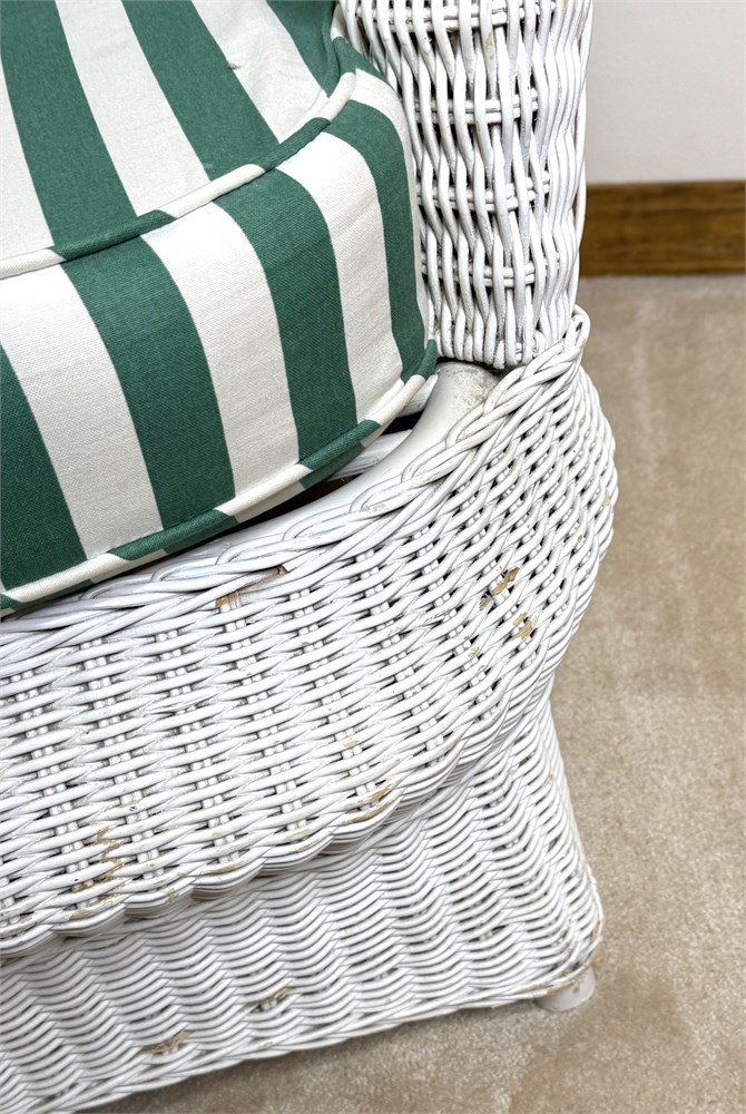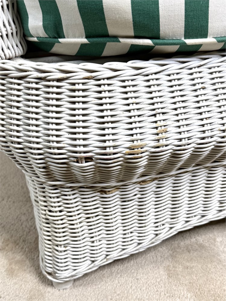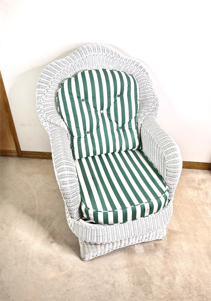White Wicker Chair with Green And White Striped Cushions View Watchlist >