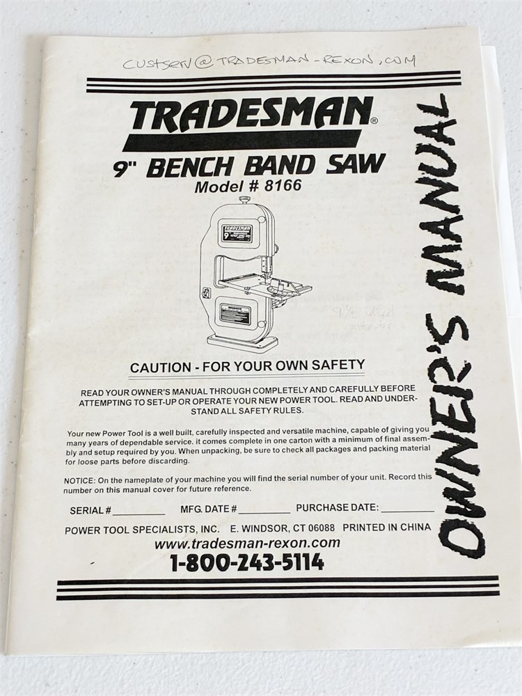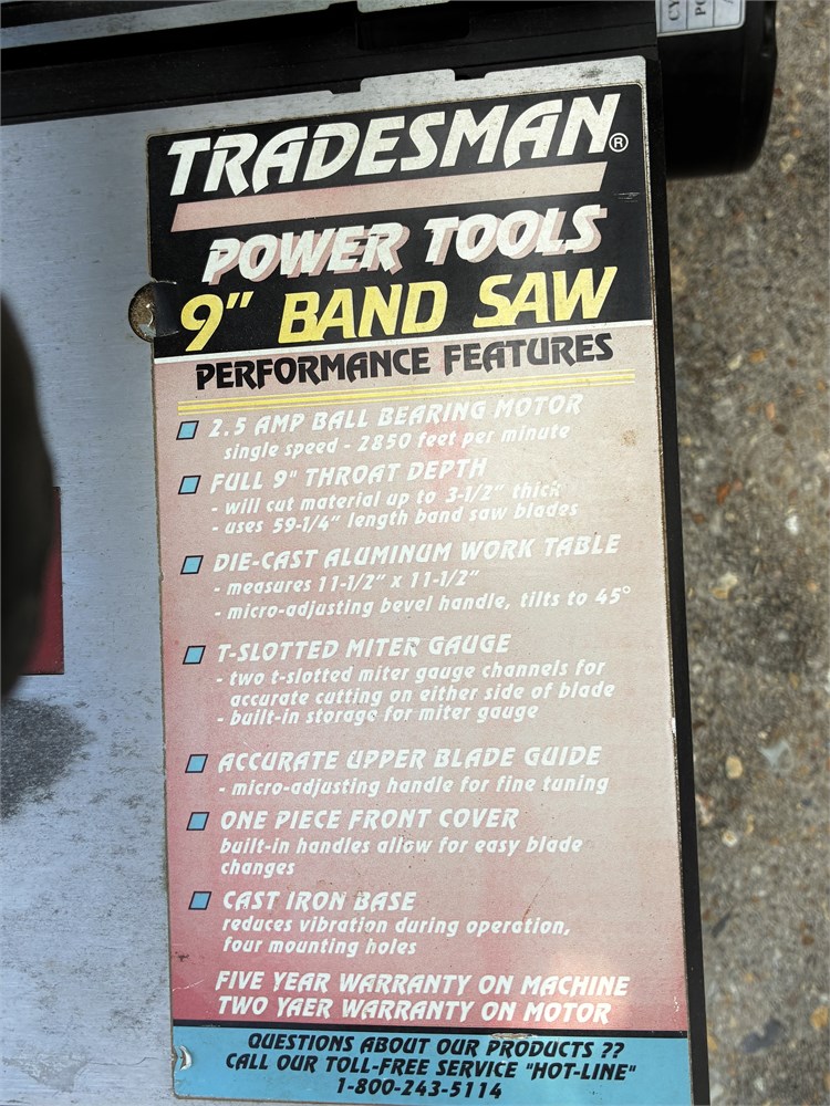 TRADESMAN ~ 9" Two-Wheel Bench Band Saw View Watchlist >