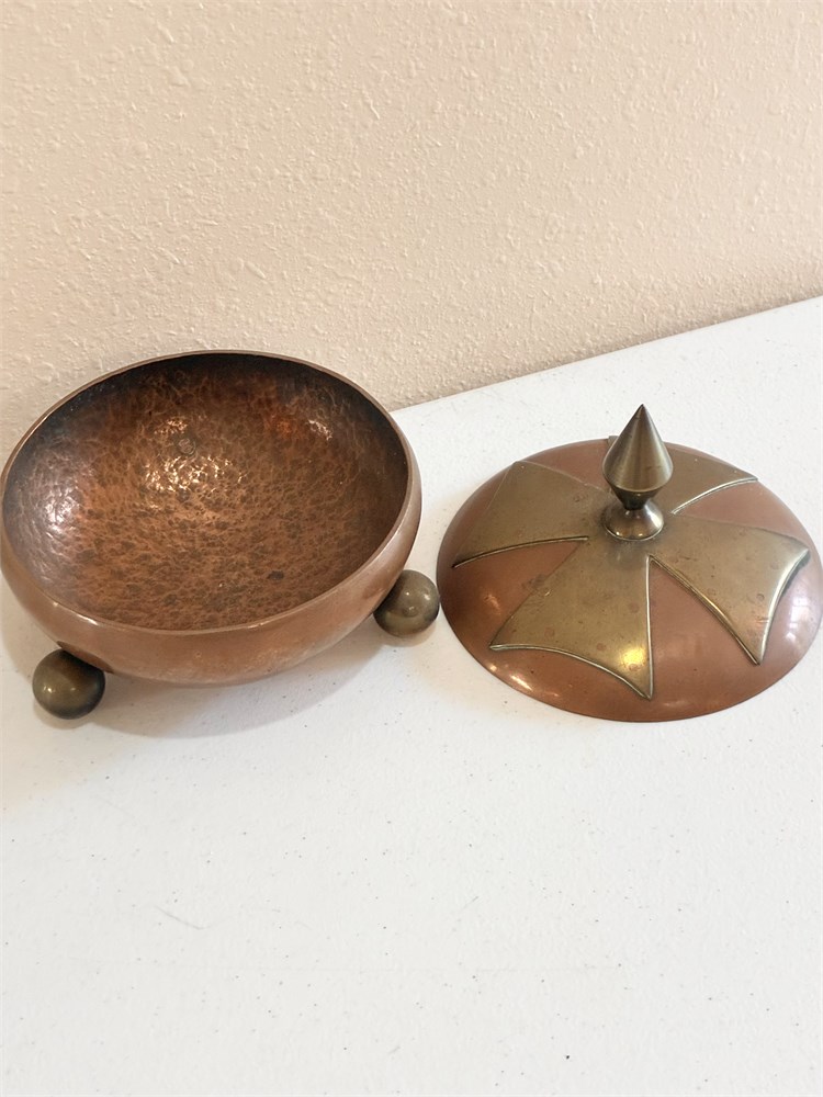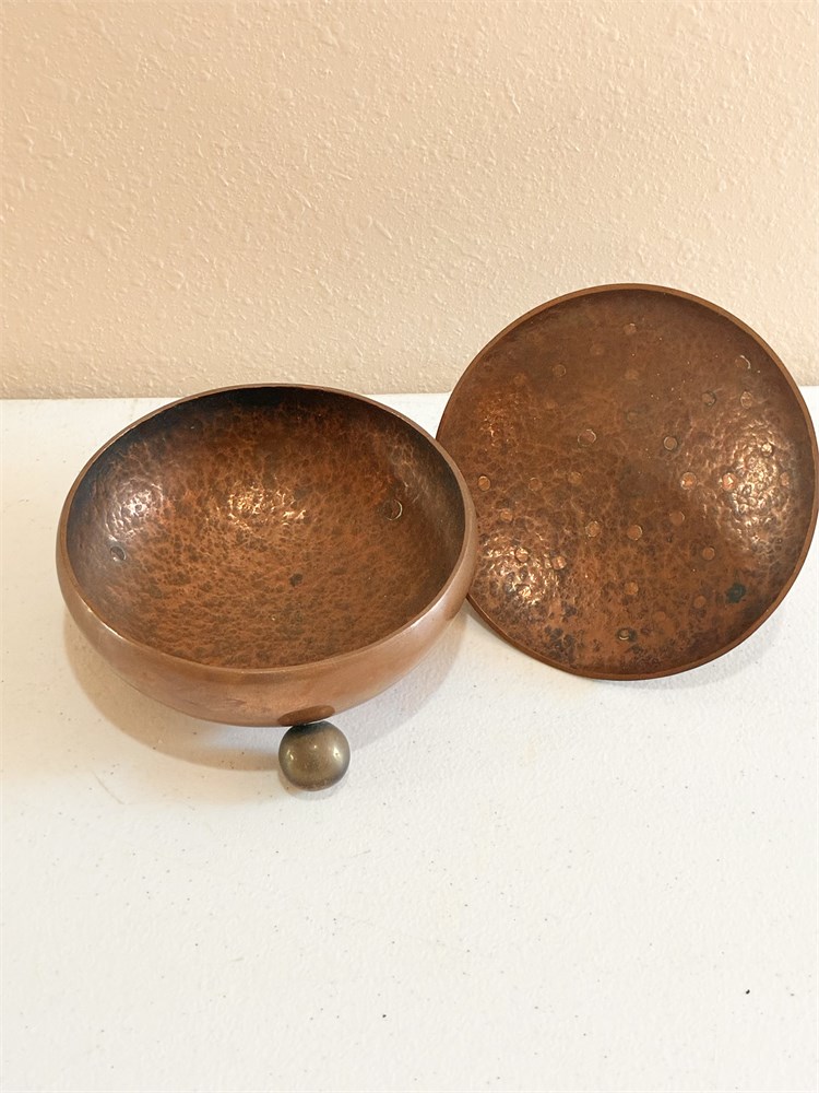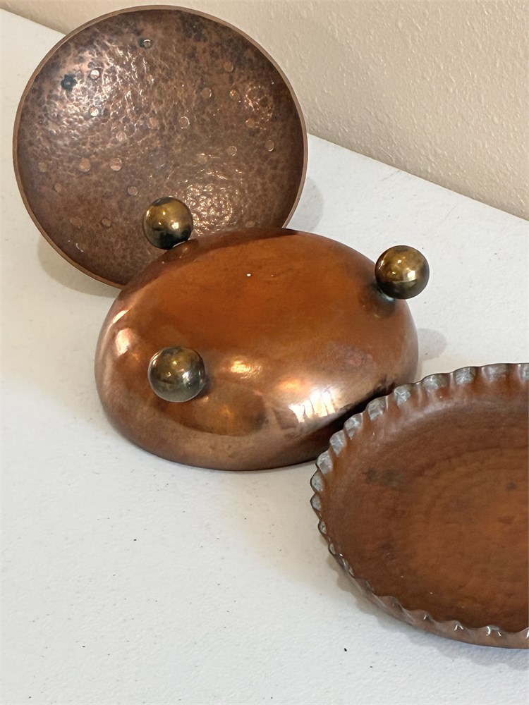 Copper & Brass Covered Dish W/ Hammered Copper Serving Tray View Watchlist >