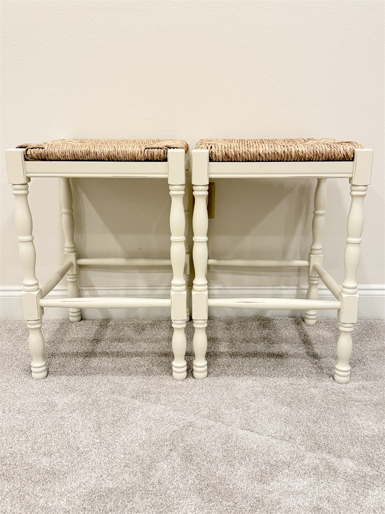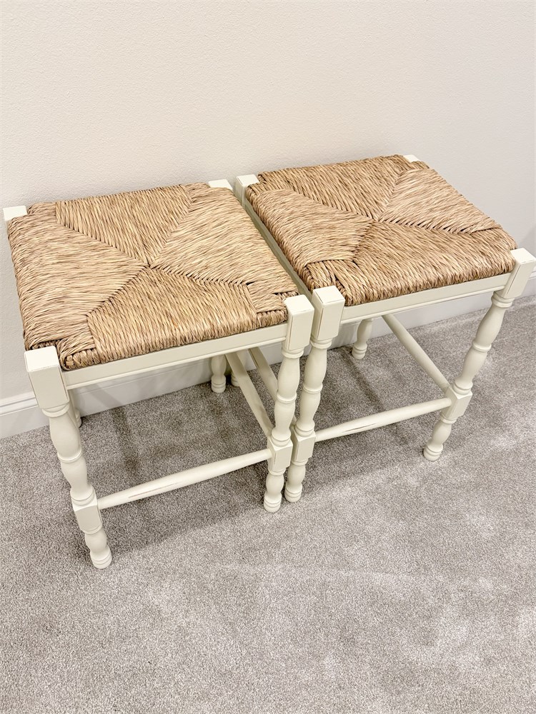 BALLARD DESIGNS ~ Dorchester ~ Pair (2) 24” Counter Stools With Rush Seat View Watchlist >