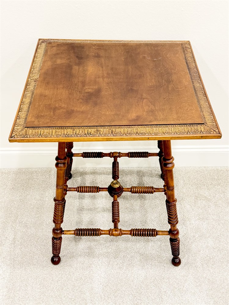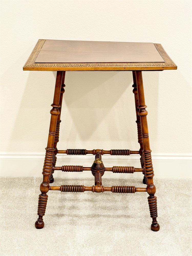 Solid Wood Spindle Leg Occasional Table With Decorative Trim On Top View Watchlist >