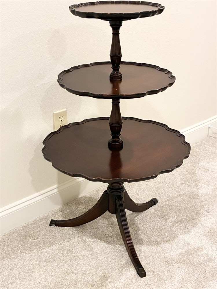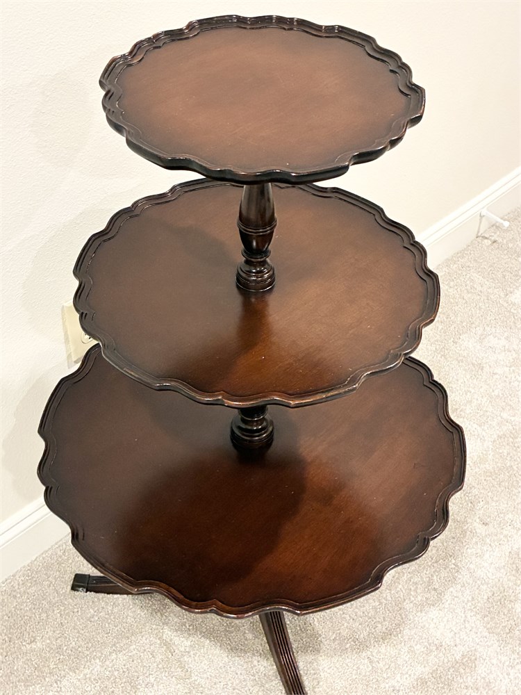 Vtg Mahogany 3-Tier Pie Crust Dumbwaiter Table View Watchlist >