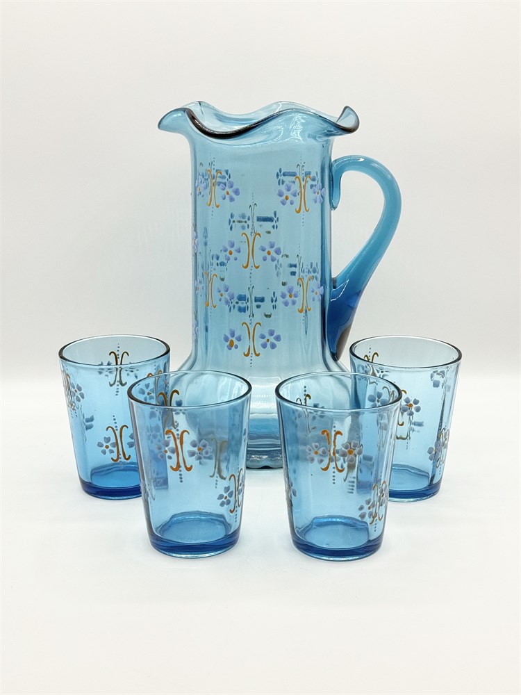 Handblown Ruffled Glass Pitcher With 4 Cups View Watchlist >