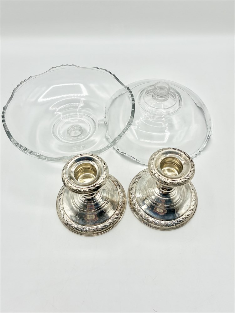 STERLING ~ AMSTON ~ Pair of Vtg Sterling & Glass Compote Bowls View Watchlist >