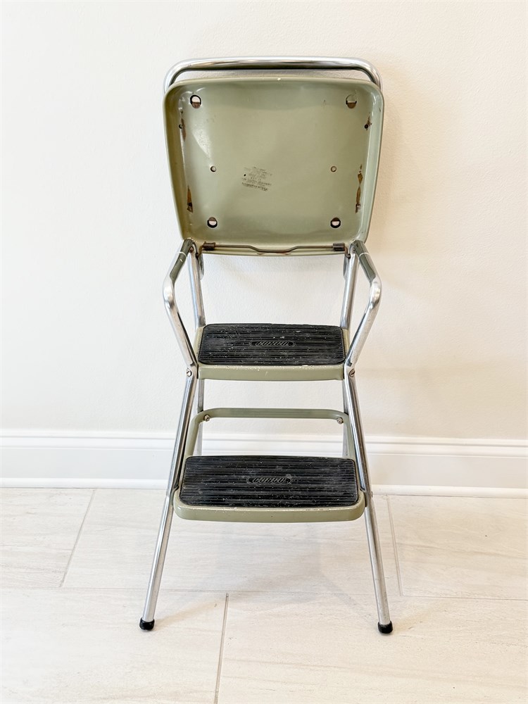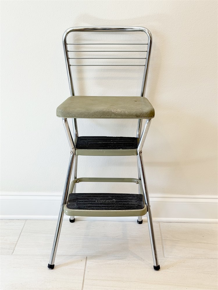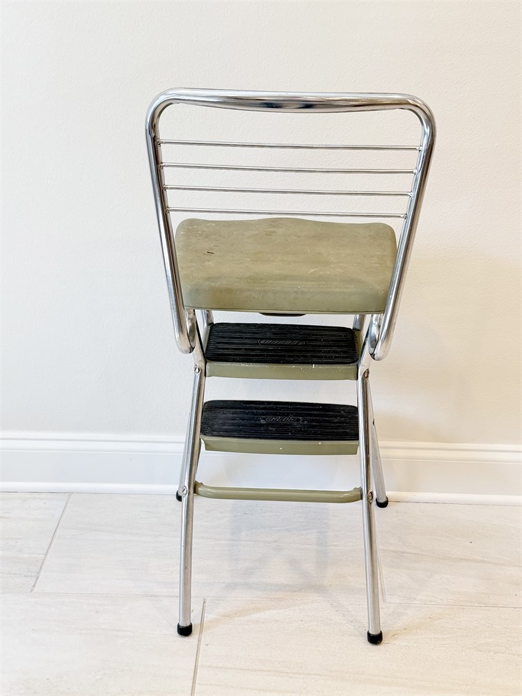 COSCO ~ Vtg. Chrome Step Stool / Chair With Avocado Green Seat View Watchlist >