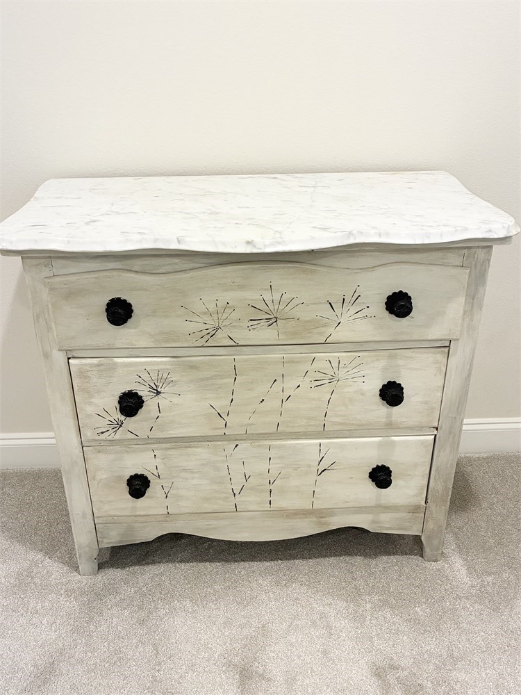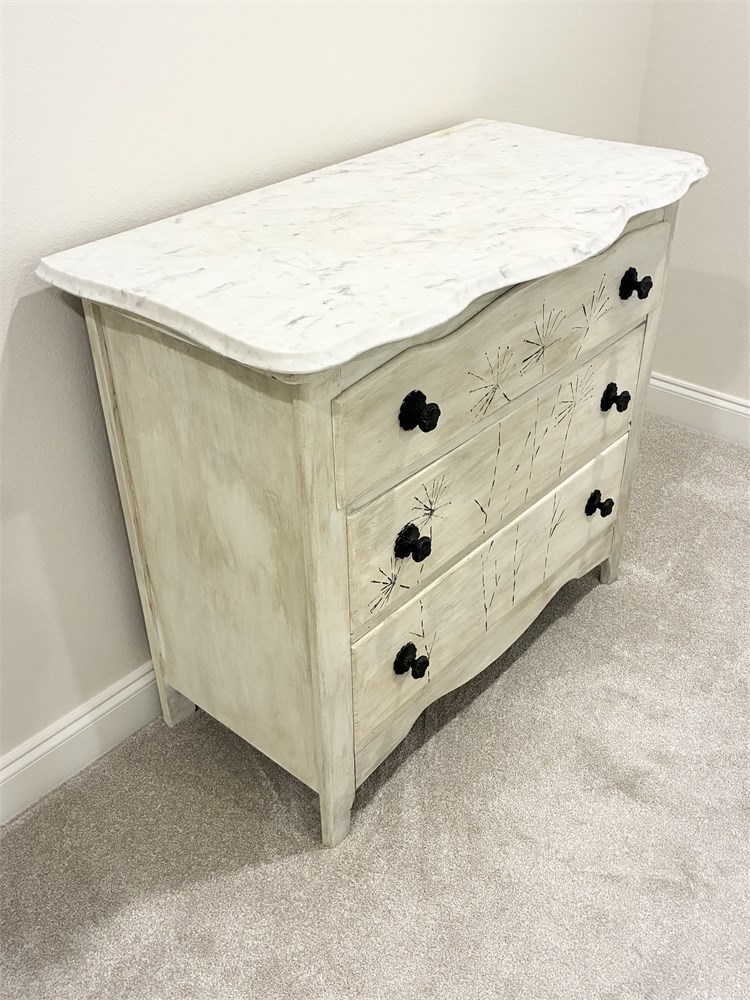 Painted Wooden Chest Of Drawers W/ Marble Top View Watchlist >