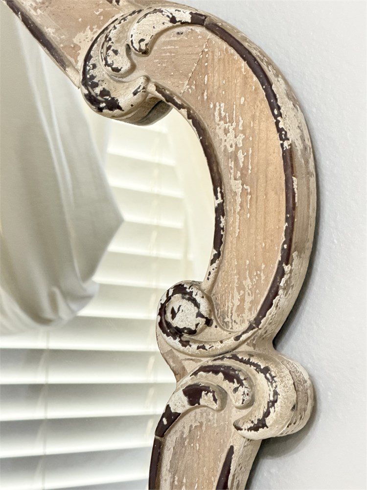UMA ~ Cream Wood Scroll Distressed Wall Mirror View Watchlist >