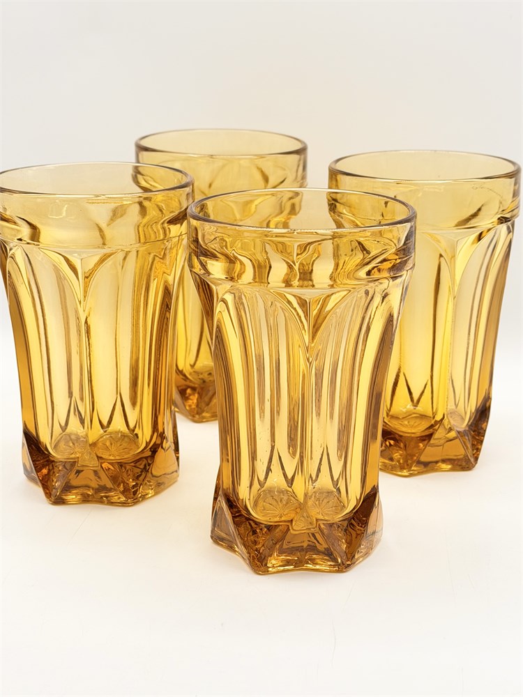 ANCHOR HOCKING ~ Fairfield Amber ~ Pitcher & 4 Flat Tumblers Set View Watchlist >
