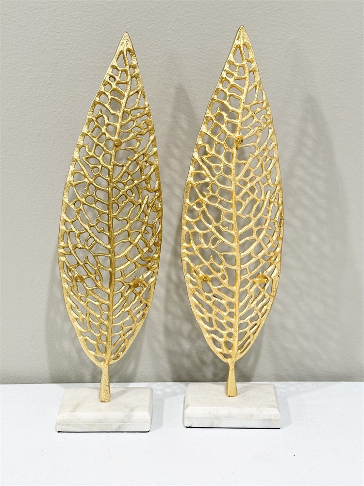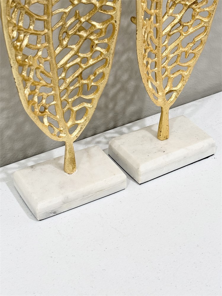 Metal Leaf Sculptures On Marble Stands View Watchlist >