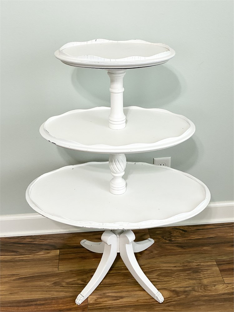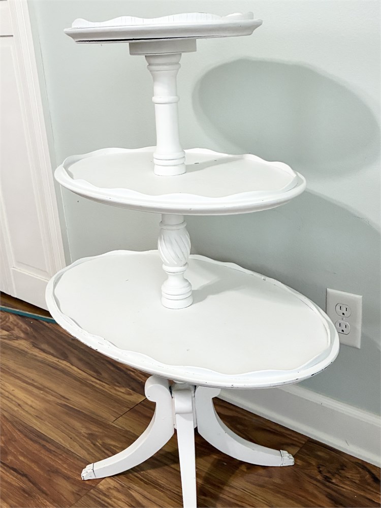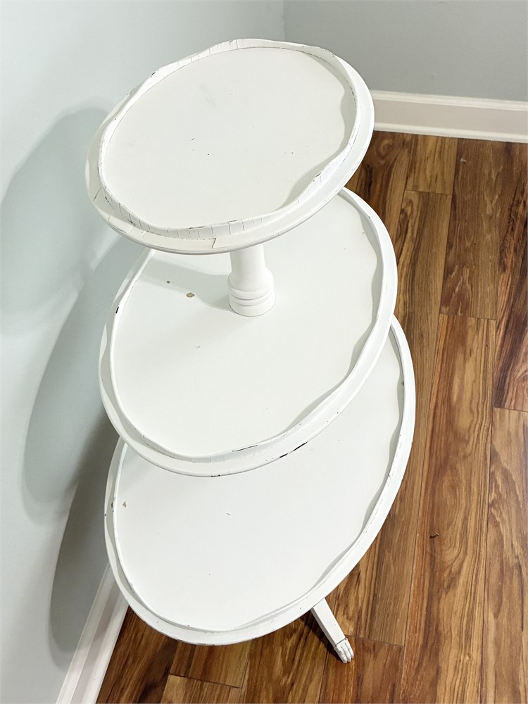 Vtg Painted 3-Tier Pie-Crust Dumbbell Table View Watchlist >