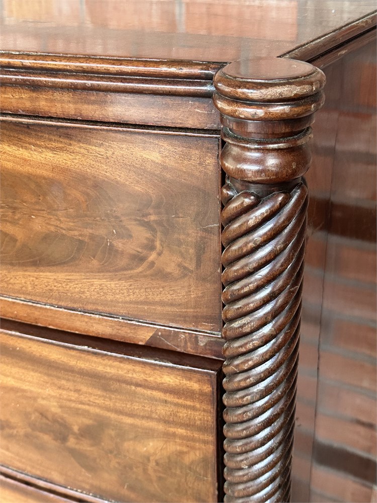 Antique Victorian mahogany Scotch chest of drawers, likely dating from the 19th century.