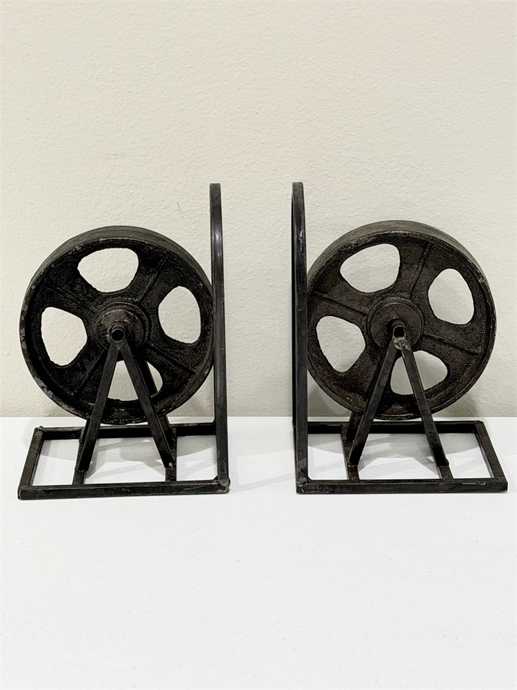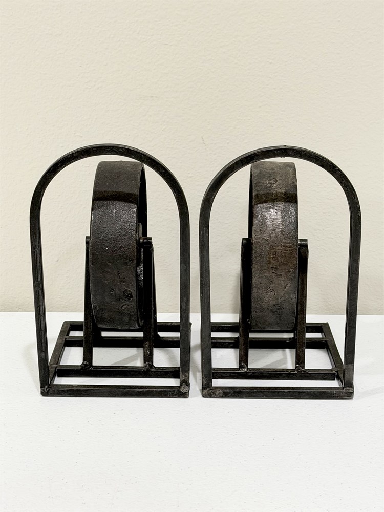 Vtg. Cast Iron Pulley Wheel Bookends View Watchlist >