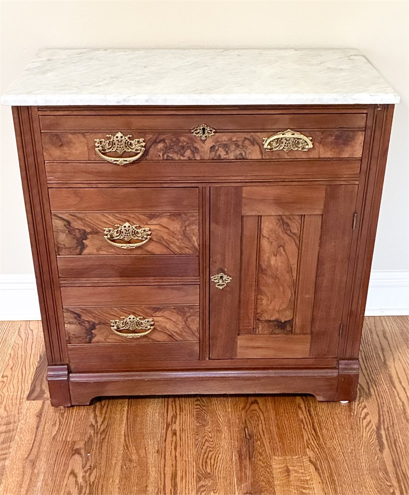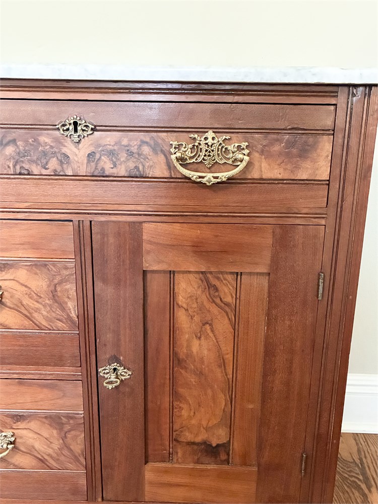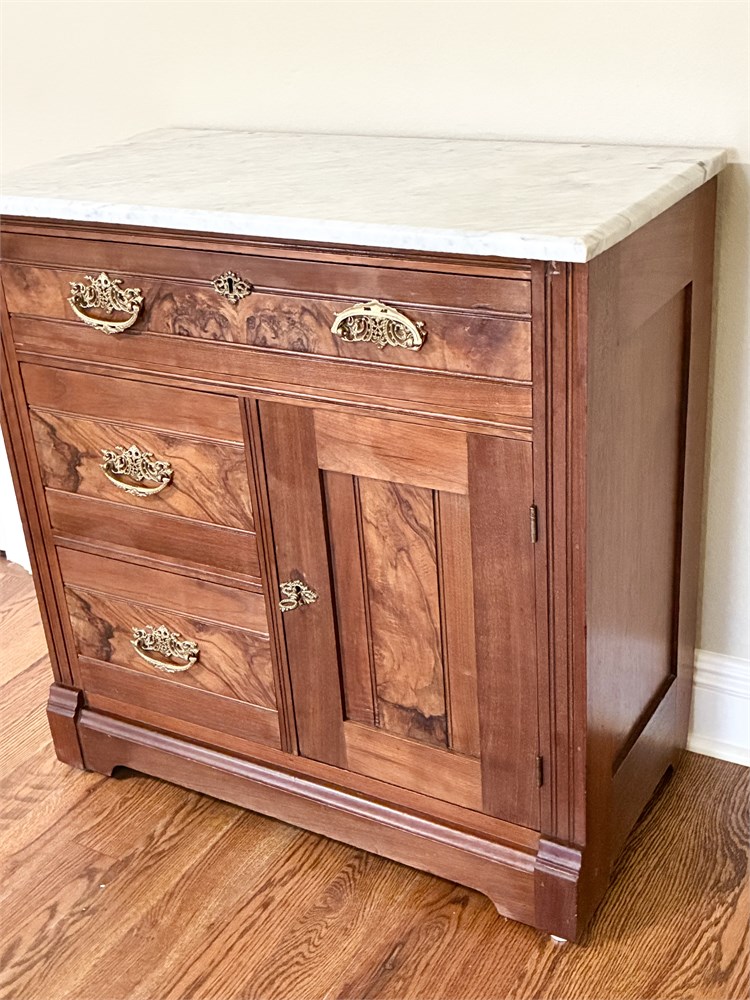 Vtg Victorian Eastlake Style Solid Wood Marble-Top Washstand View Watchlist >