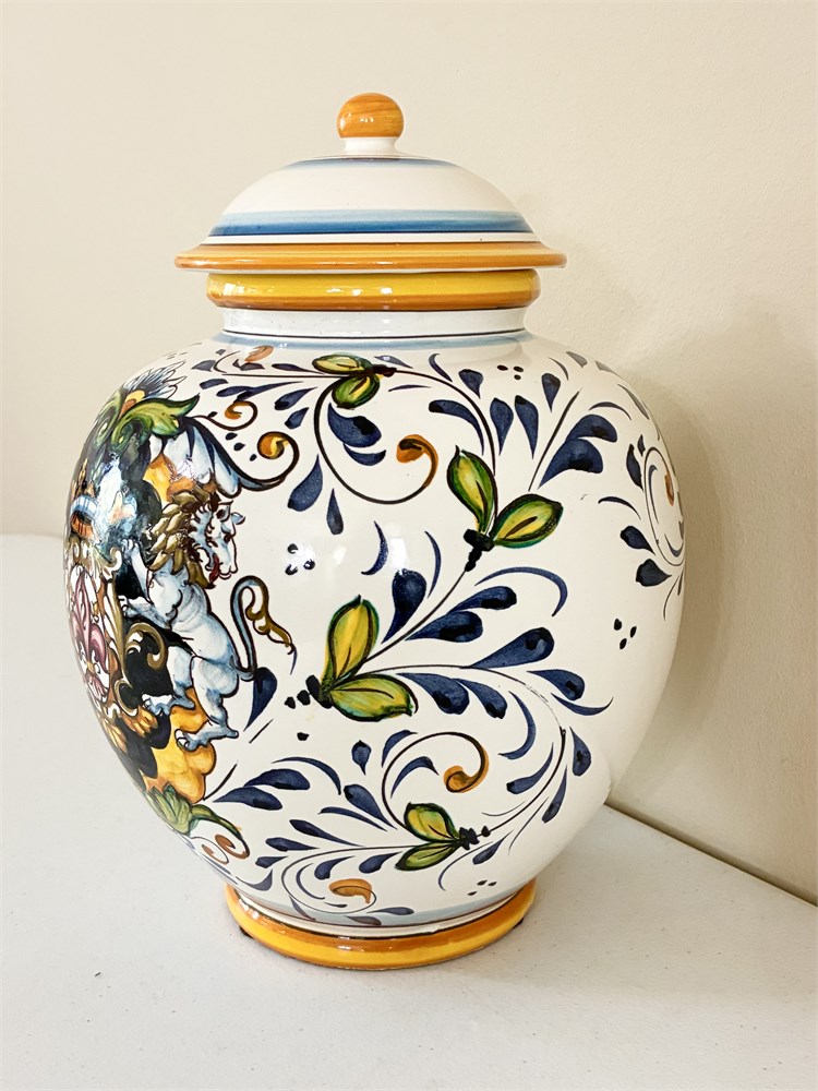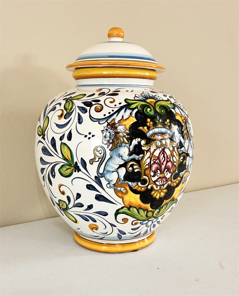 Hand-Painted Italian Pottery Urn W/ Lid View Watchlist >