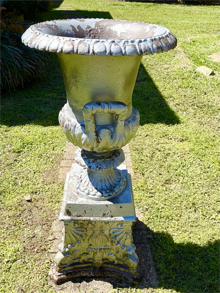Painted Metal Garden Pedestal Urn Planter View Watchlist >