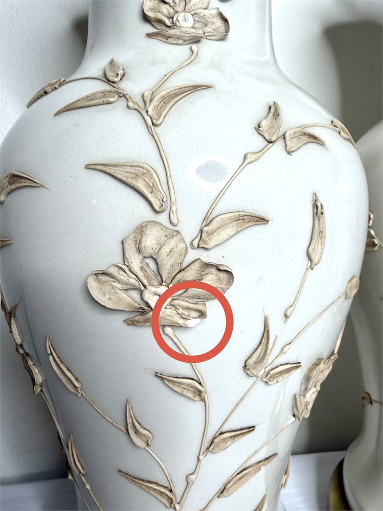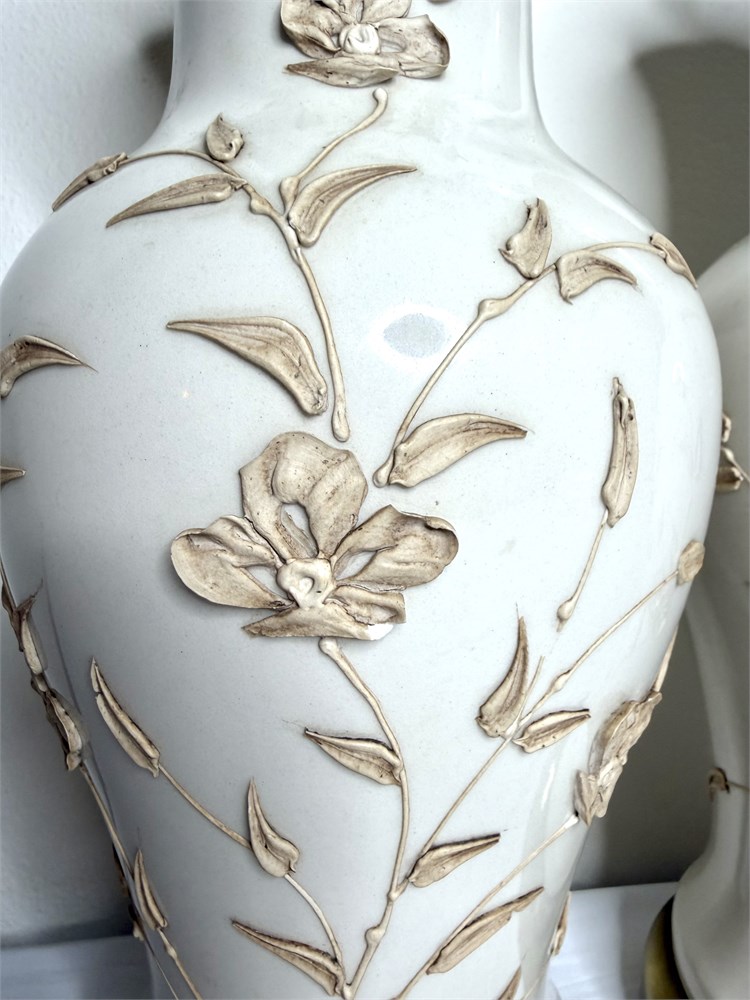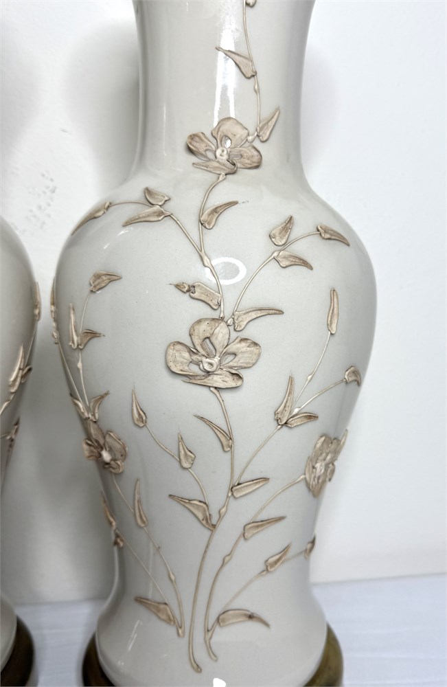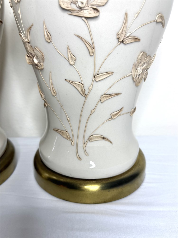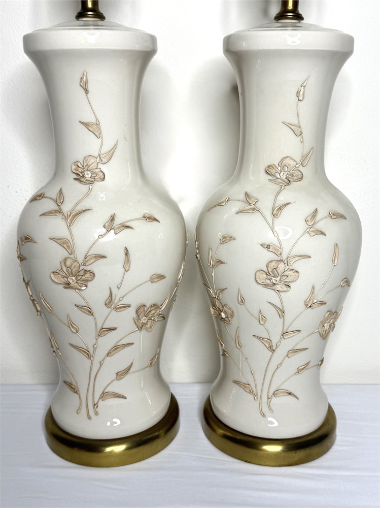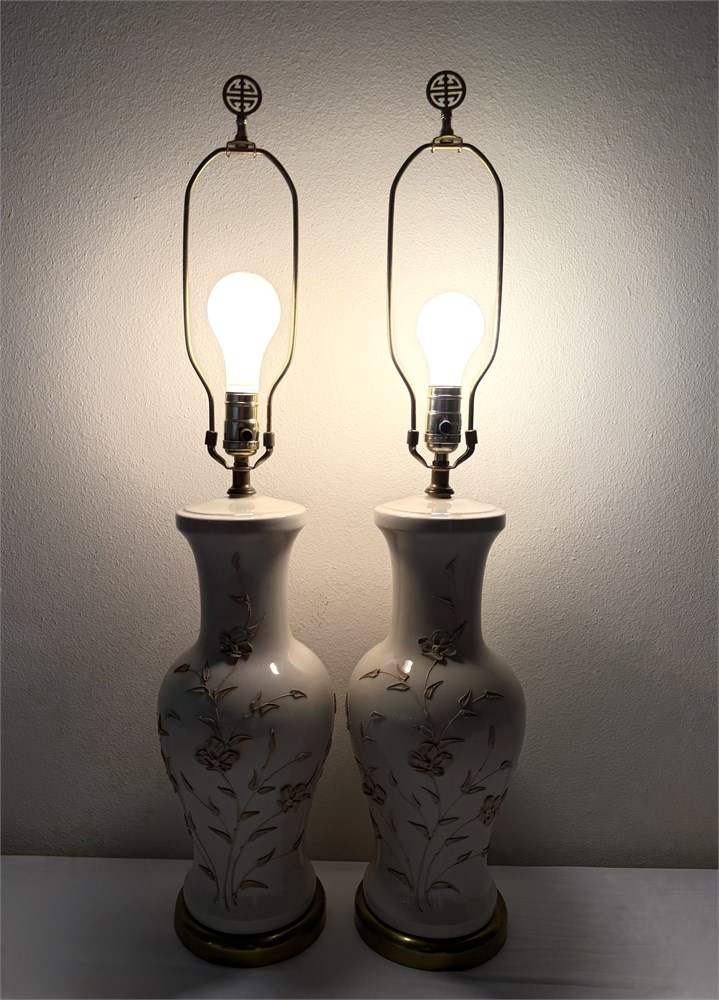 Set of 2 Vtg Porcelain Floral Lamps with Asian Finials View Watchlist >