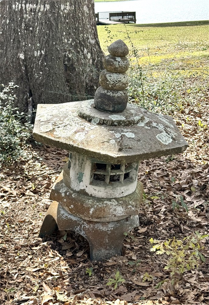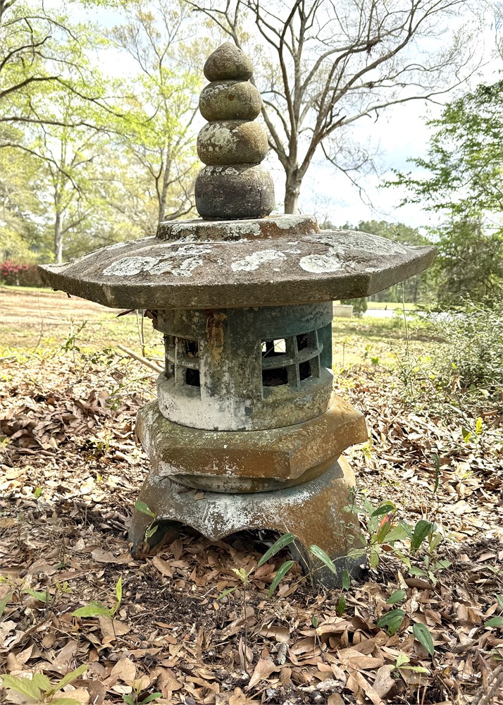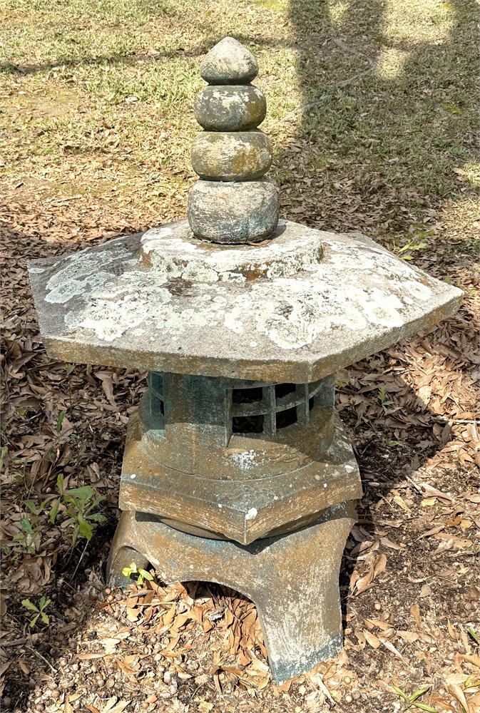 Large Japanese Stone Lantern Cement Pagoda Statue with Patina View Watchlist >
