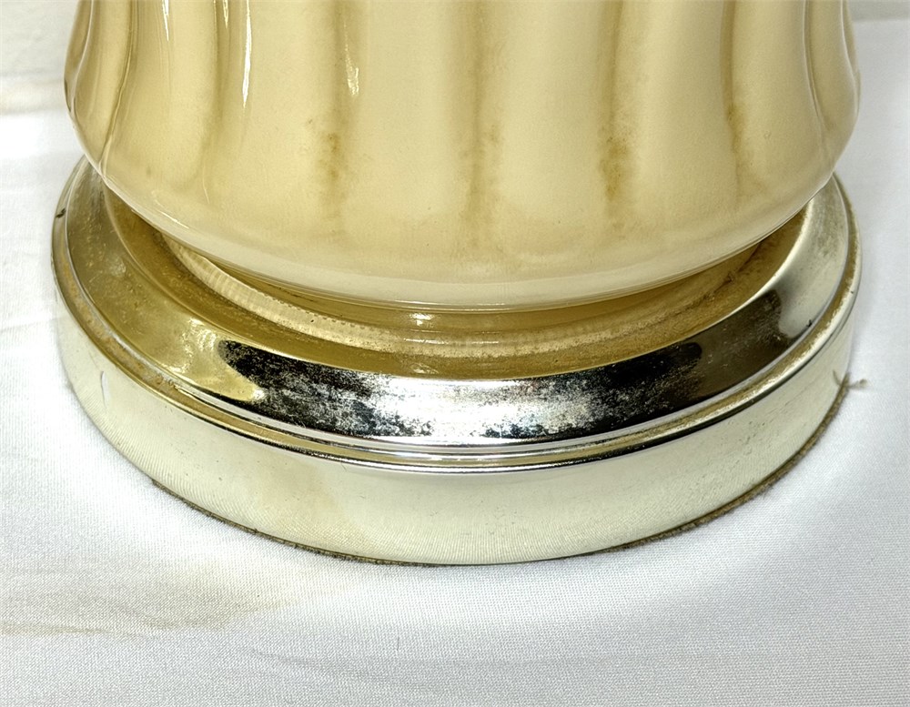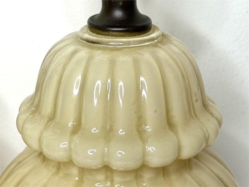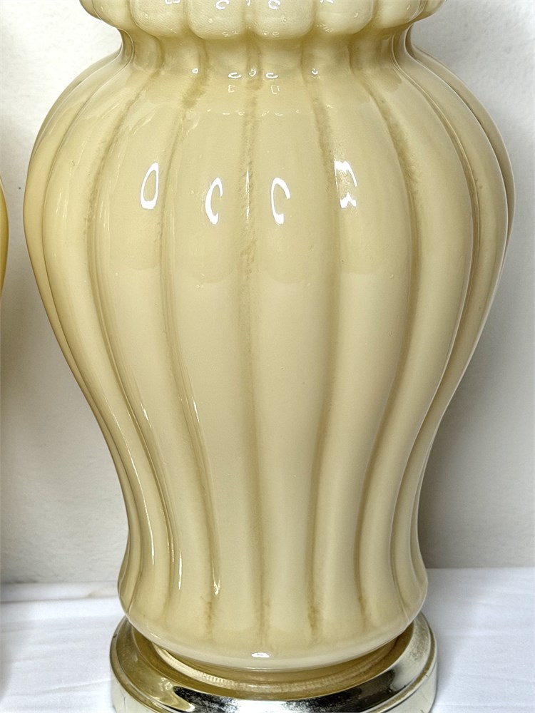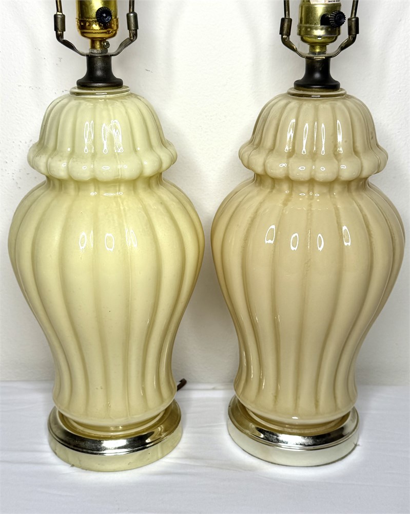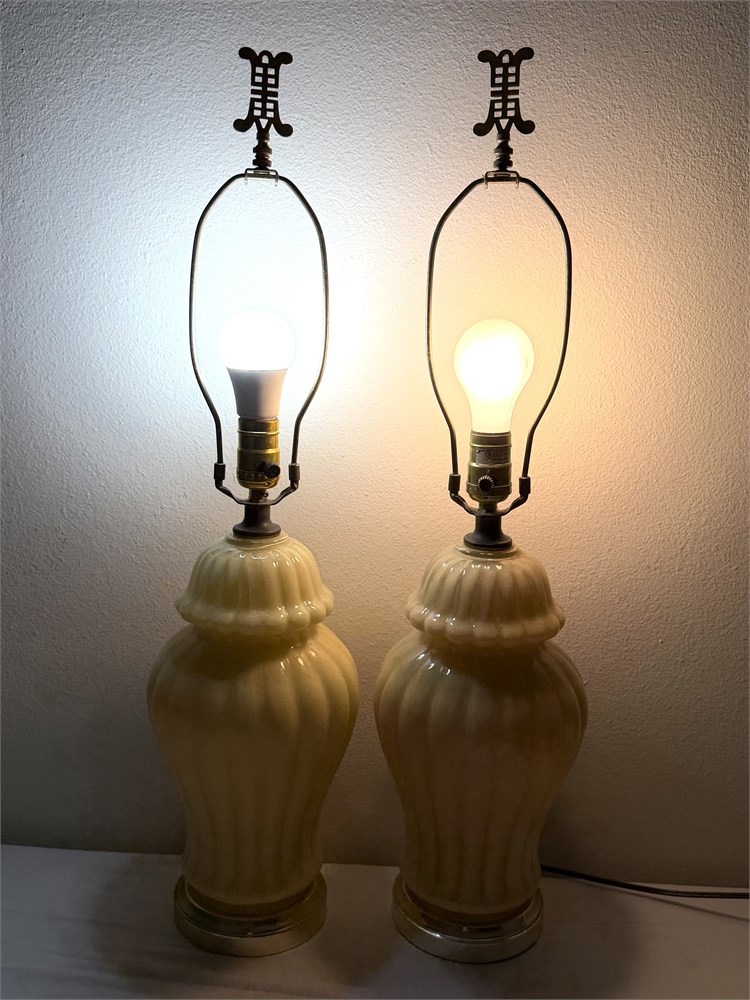 Vintage Set of 2 Taupe Ceramic Ginger Jar Lamps with Asian Finials View Watchlist >