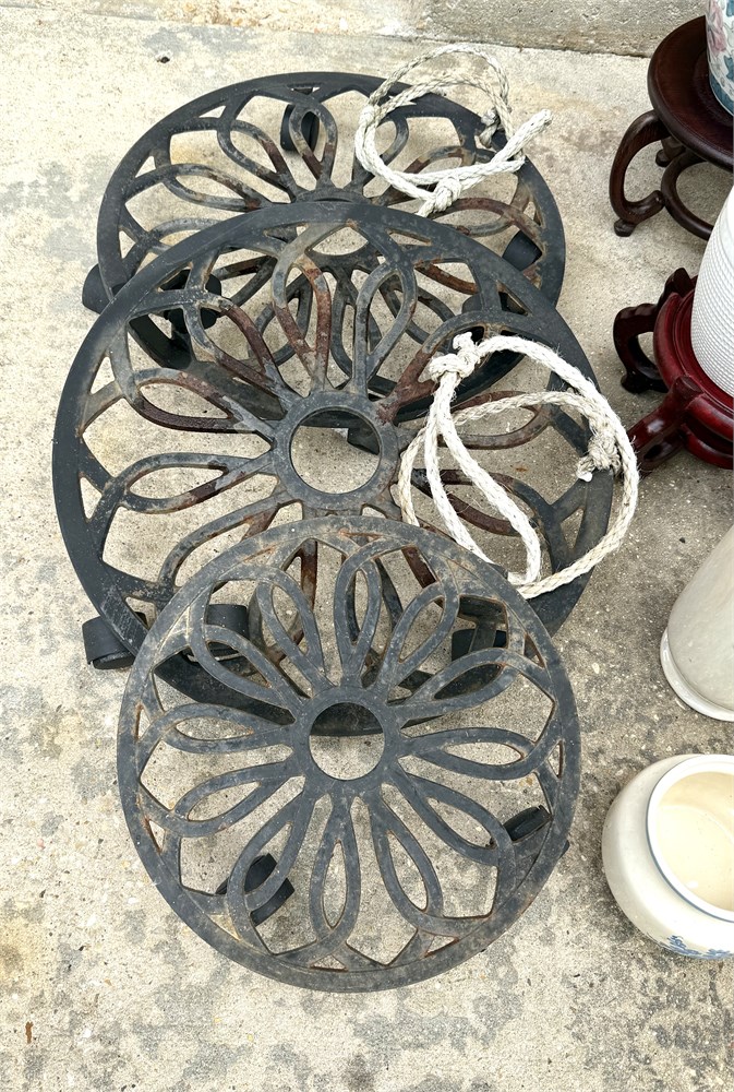 Large Rolling Plant Stands - 2 are 16-7/8" Dia. and 1 is 12" Dia.