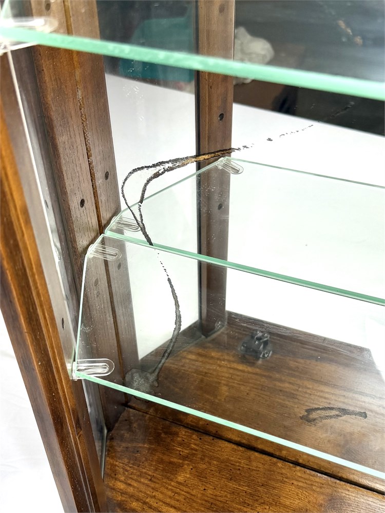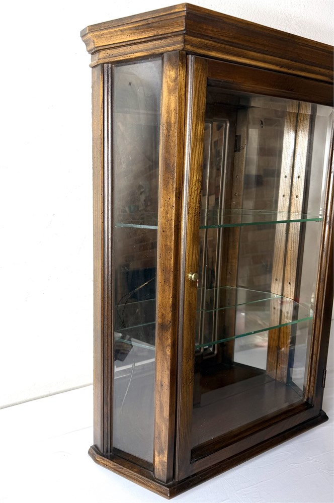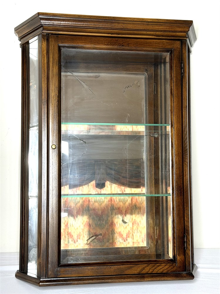 Vintage Wall Hanging Wood Curio Cabinet with Mirror View Watchlist >