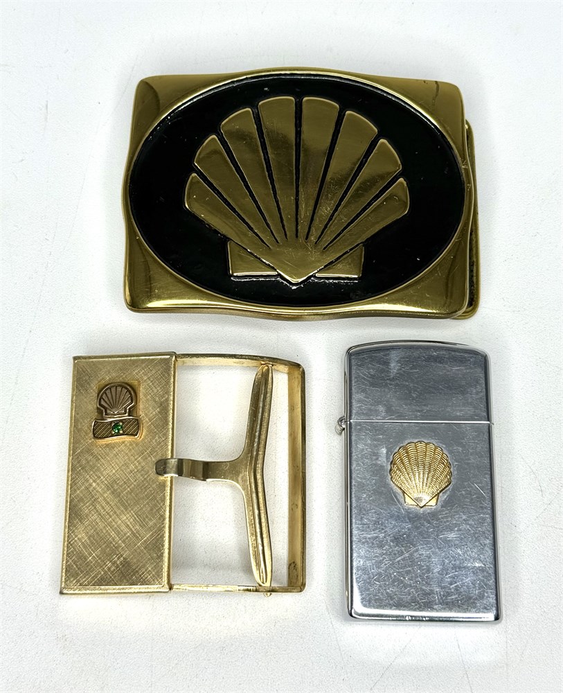 Vintage Shell Oil Collectible Lot - Lighter and Belt Buckles View Watchlist >