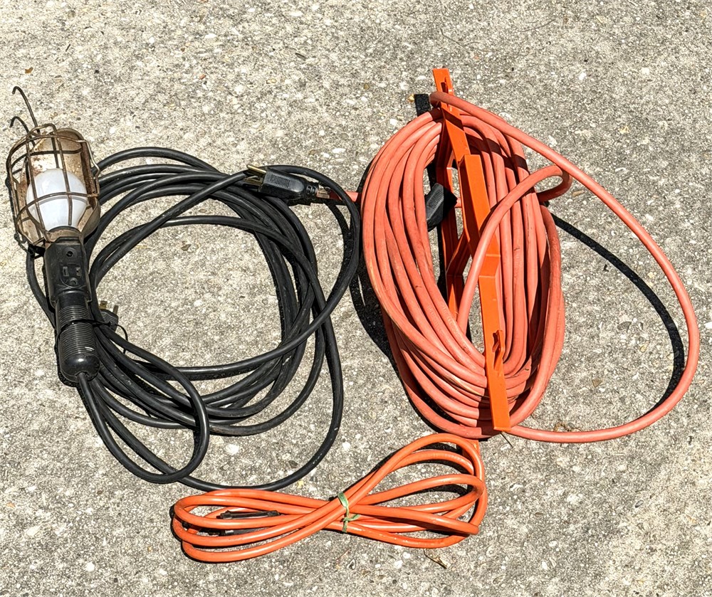 Lot of 4 Extension Cords, a Portable Work Light and 3 Extension Cord Winders View Watchlist >