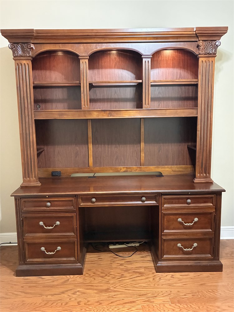 STANLEY ~ Solid Wood Lighted Computer Desk / Credenza & Hutch Set View Watchlist >