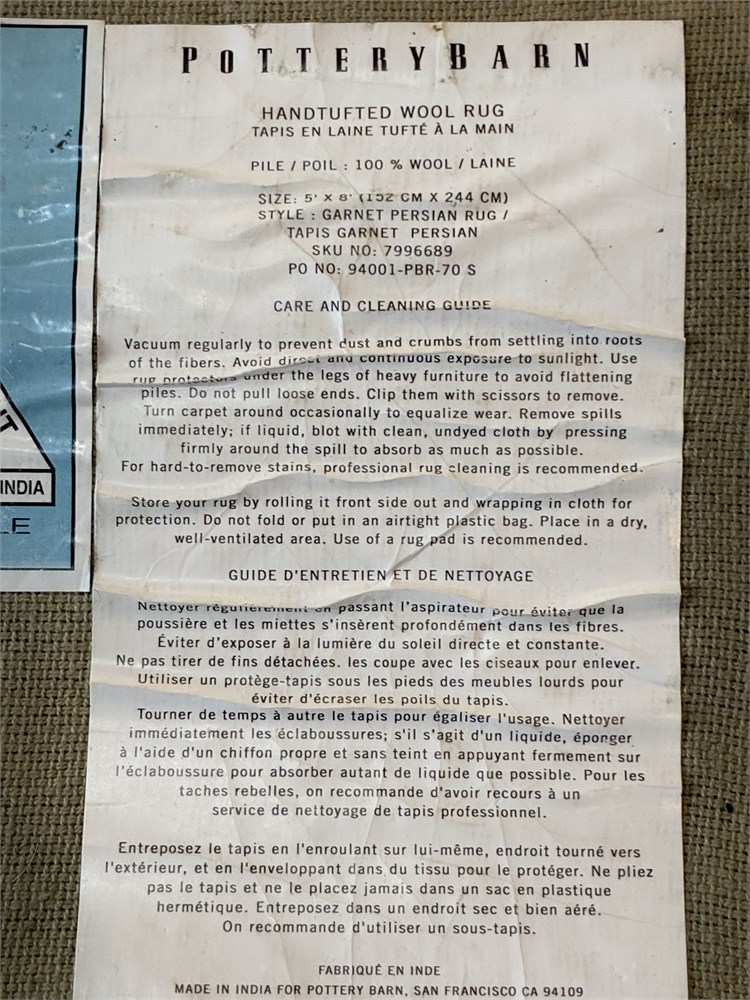 POTTERY BARN ~ “Garnet Persian” ~ Hand-Tufted Wool Rug View Watchlist >