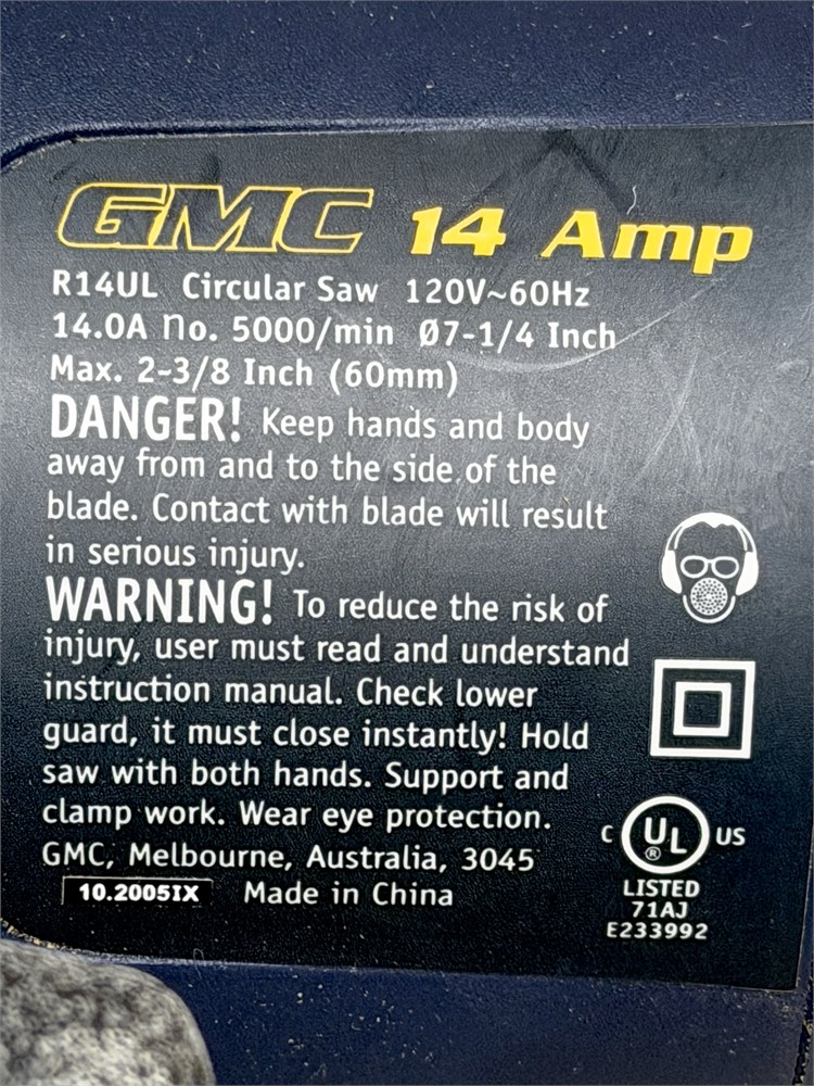 GMC ~ 7 1/4” Circular Saw With Laser Line Generator View Watchlist >