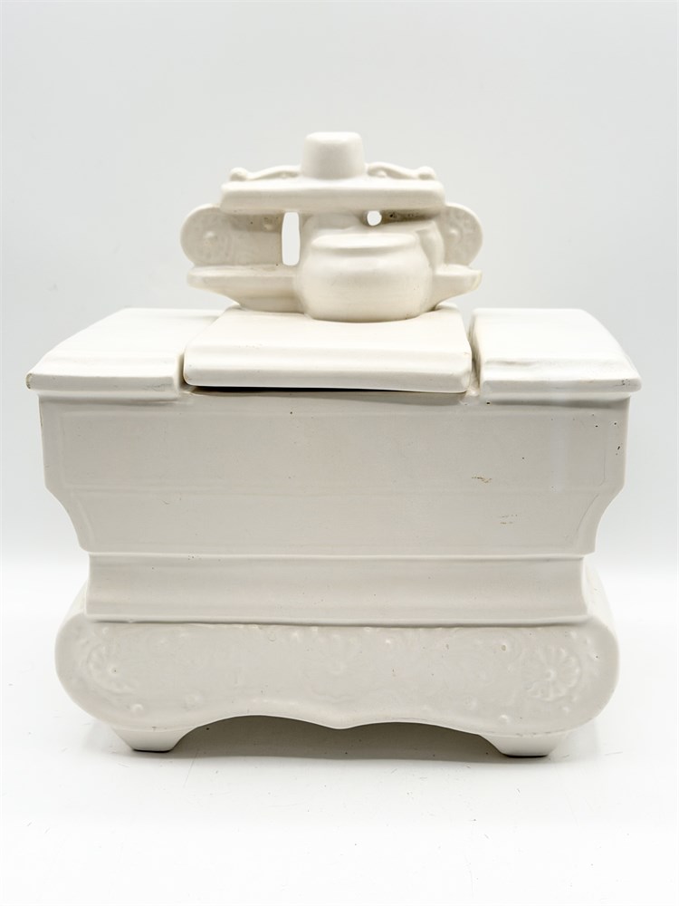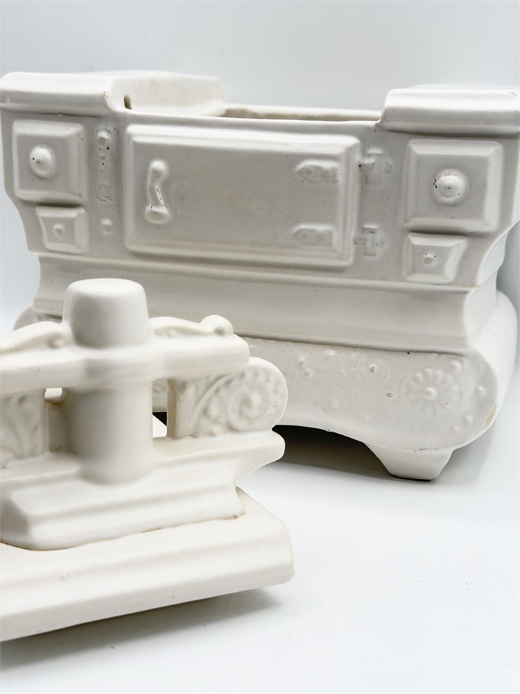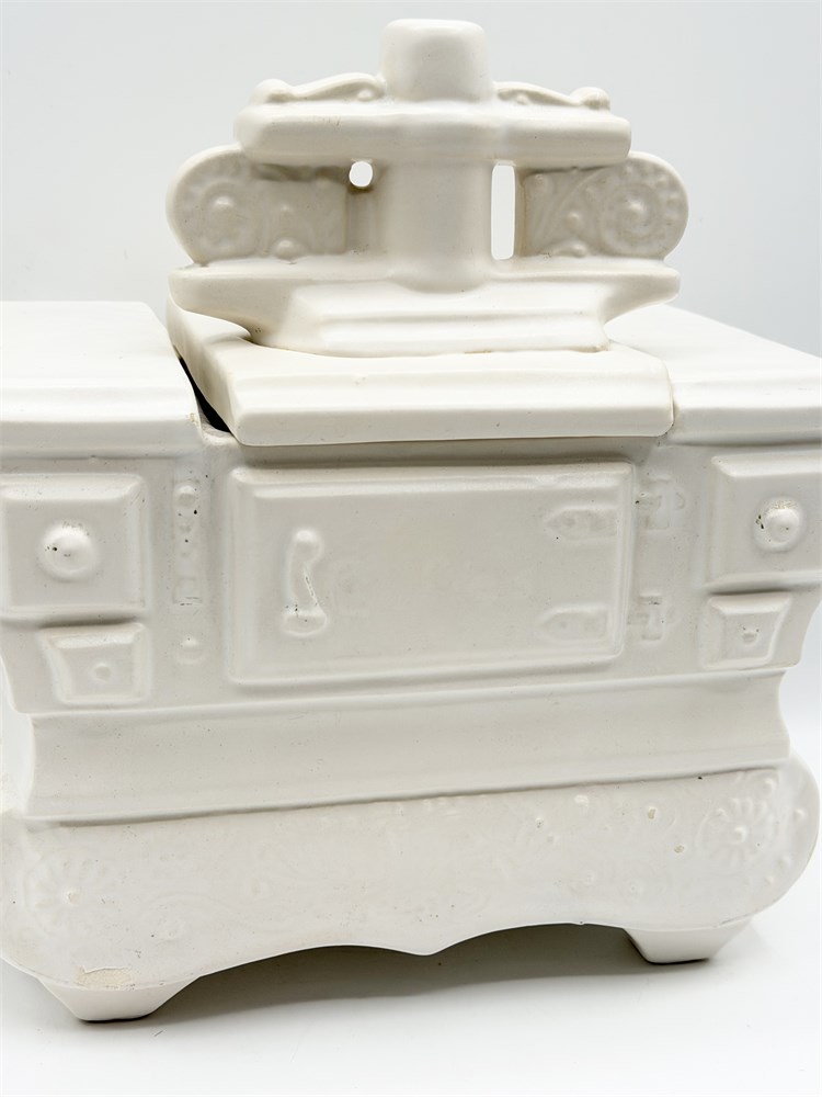 MCCOY POTTERY ~ White Ceramic Vtg. Wood Burning Stove Cookie Jar View Watchlist >