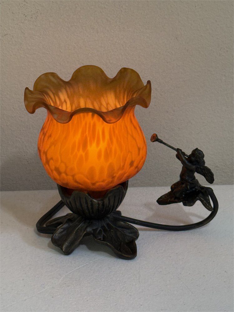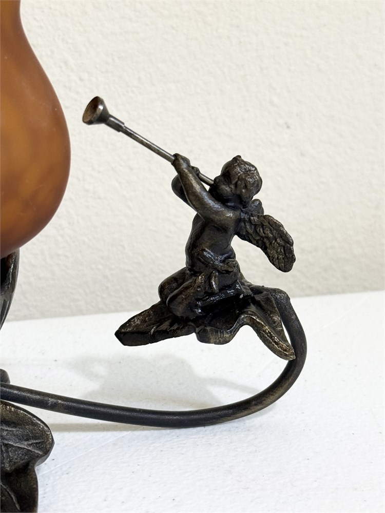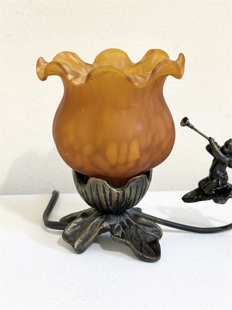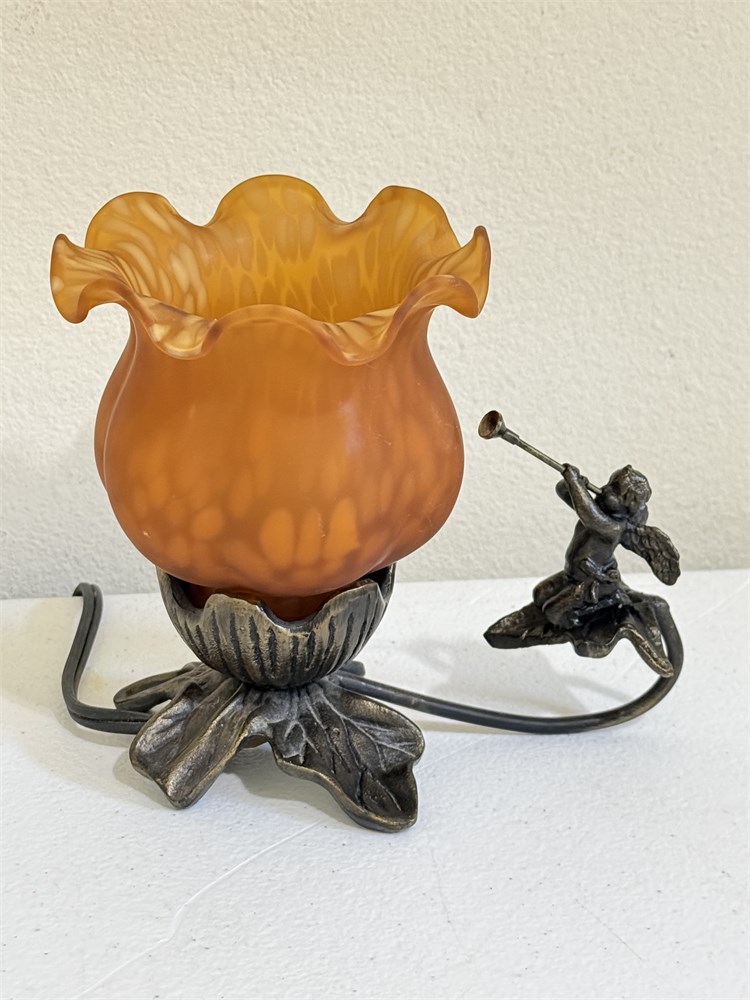 (1) Glass / Metal Cherub Flower Lily Lamp View Watchlist >