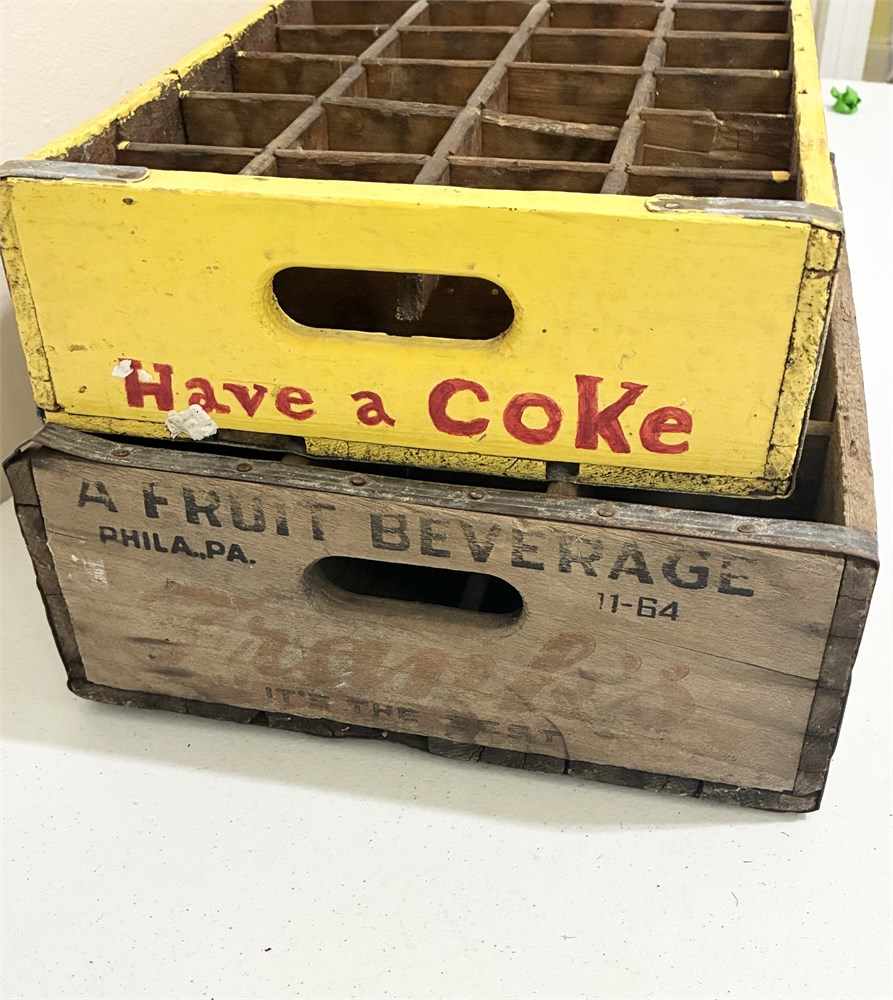 2 Vtg Wooden Soda Bottle Crates View Watchlist >