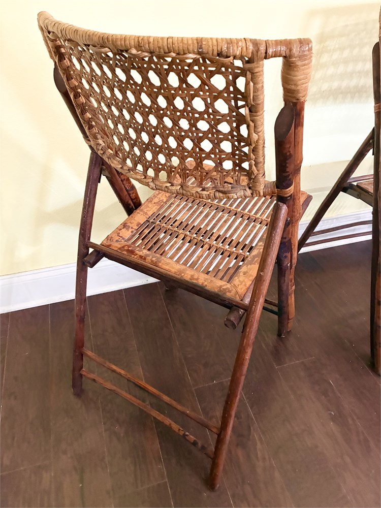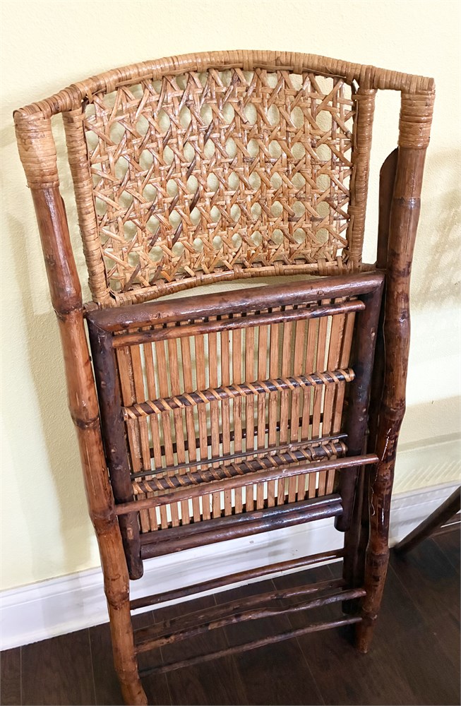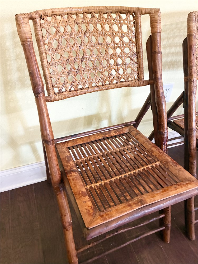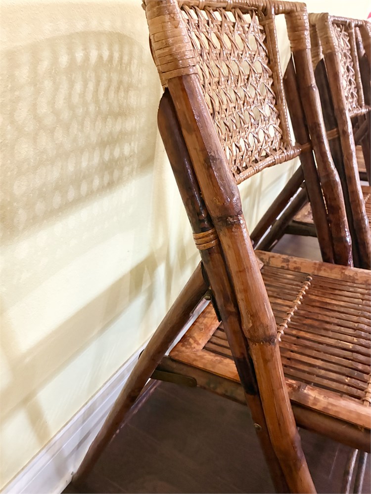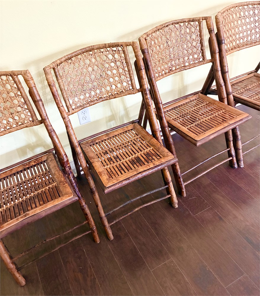 Set of 4 Tortoise-Shell Burnt Bamboo Folding Chairs View Watchlist >