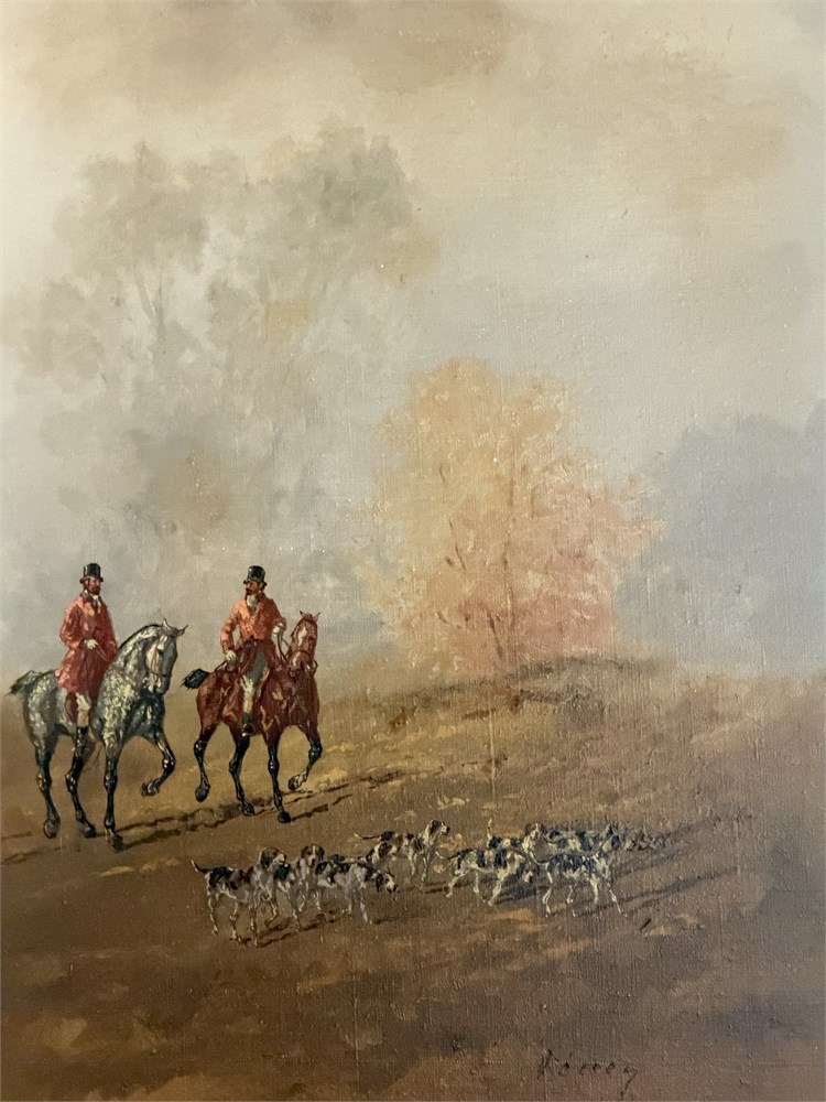 Beautifully Framed Fox Hunt Oil Painting On Canvas View Watchlist >
