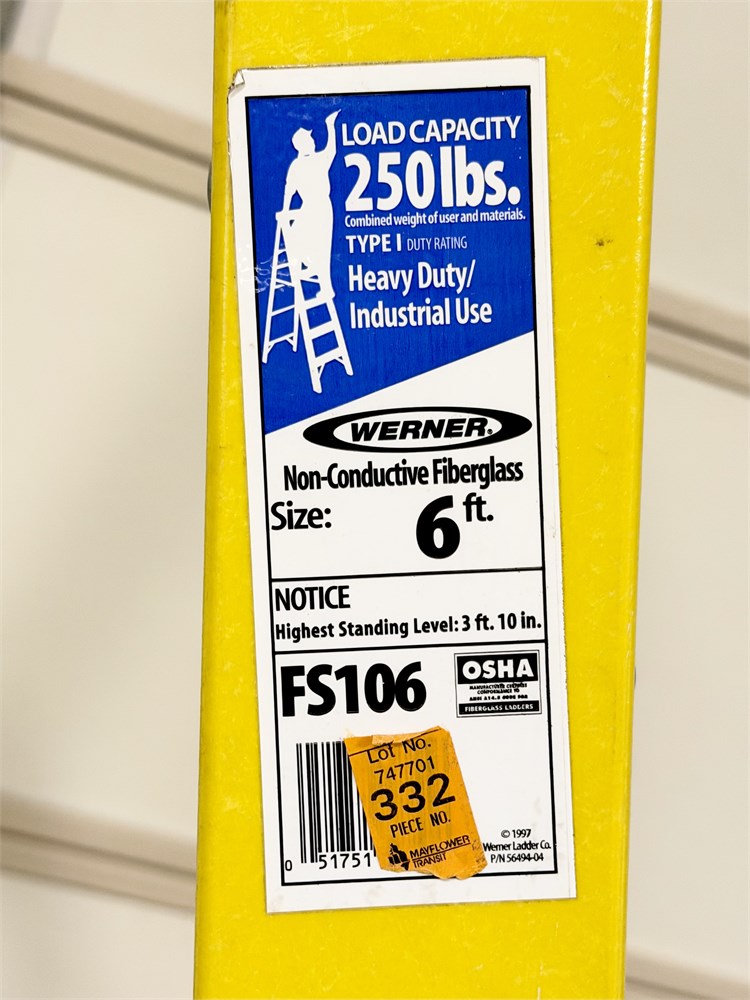 WERNER ~ 6’ Fiberglass Step Ladder View Watchlist >
