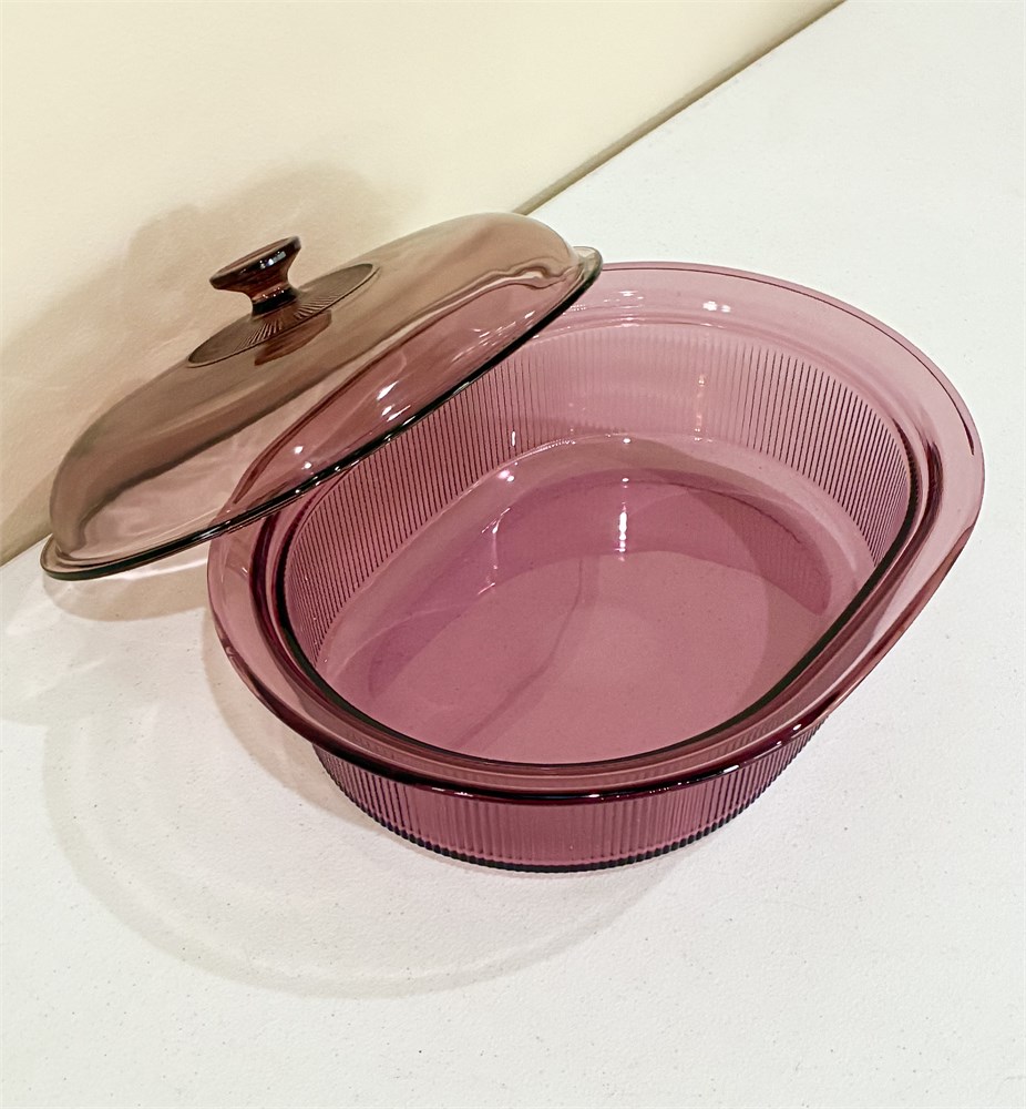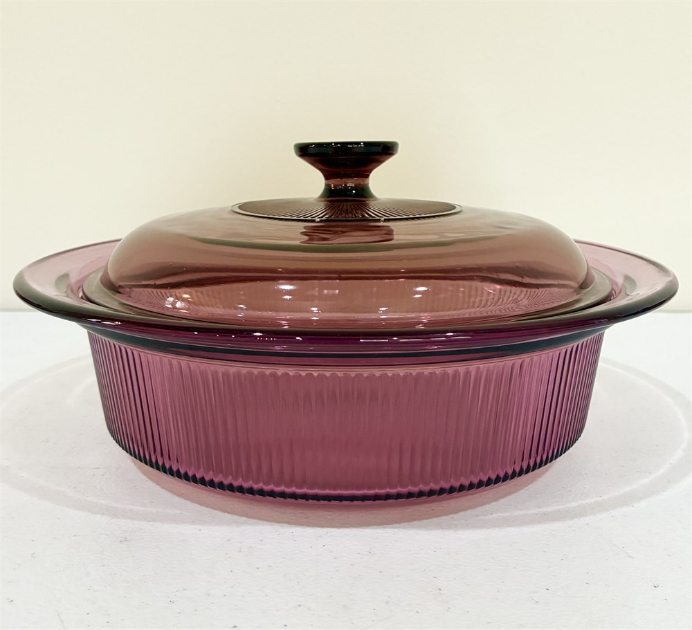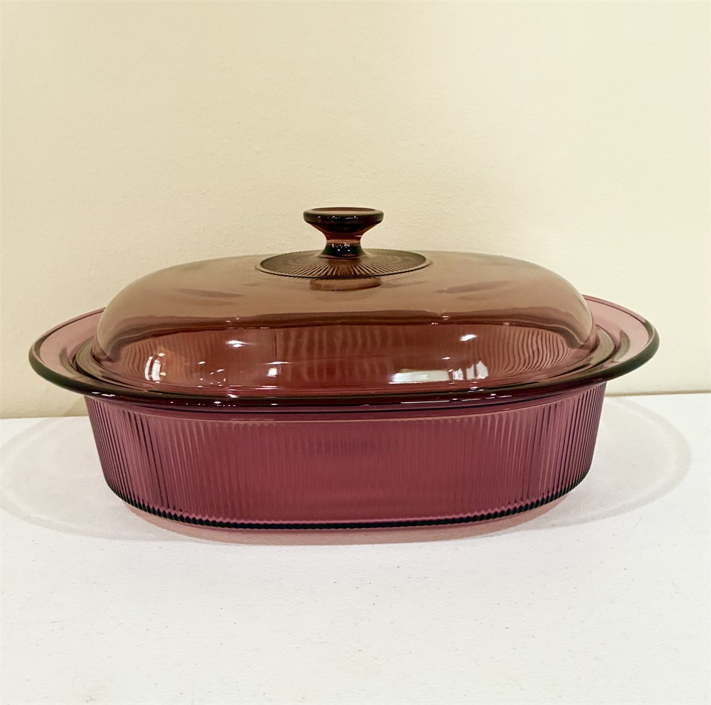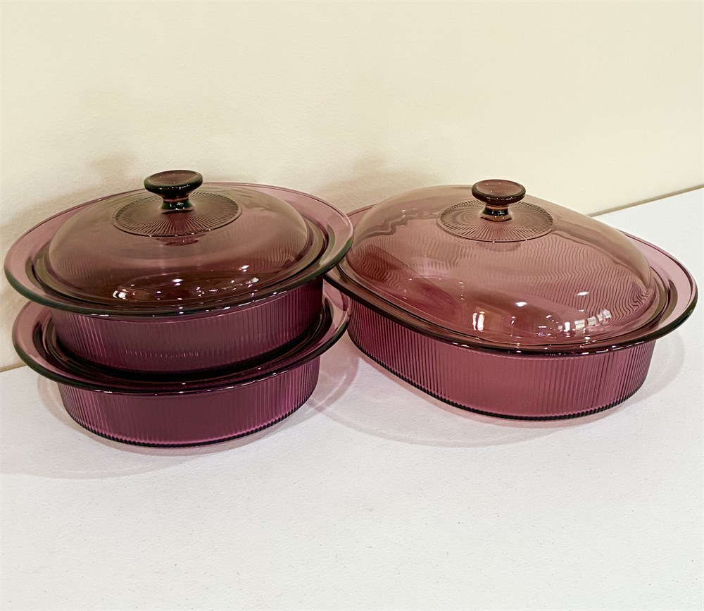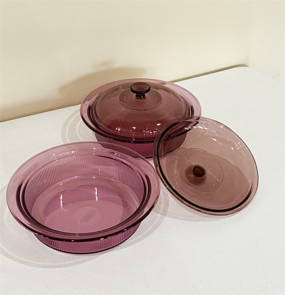 CORNING ~ Visions “Cranberry” ~ Set of 3 Glass Casserole Dishes W/ Lids View Watchlist >